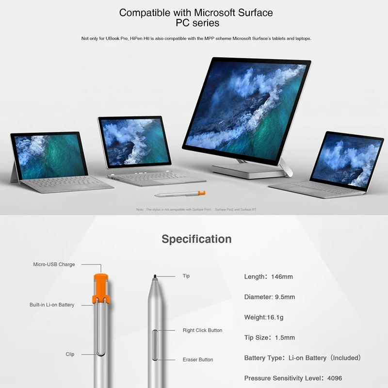 Эргономичный дизайн обеспечивает комфортное сцепление: Стилус изготовлен из передового алюминиевого сплава с анодным песком, обеспечивает отличное качество и ощущение руки, весит всего 16 гБолее деликатное восприятие с 4096 уровнями давления: Обновлено до невероятных 4096 уровней чувствительности к давлению, Hipen H6 восстанавливает опыт реального рукописного вводаТочное написание, отображение в режиме реального времени: Hipen H6 оснащен последовательным чипом датчика с низкой задержкой, обеспечивает первоклассное плавное написание и покраска experiencen.Интеллектуальный отказ от ладони: чип датчика в Hipen H6 может воспринимать вашу ладонь разумно. Даже с мультитач, экран все еще может распознавать написание стилуса в самый раз.В режиме ожидания до 90 дней после каждой зарядки: интеллектуальное управление питанием, обеспечивает до 90 дней непрерывной записи. Стилус переключается в режим сна после простоя в течение 2 минут, в режиме ожидания до 180 днейБыстрая зарядка от Micro-USB: Hipen H6 быстро заряжается через порт Micro-USB. Вместо замены аккумуляторов AAAA так часто, как обычный стилусЦвет: серебристыйМатериал: алюминиевый сплавРазмер: Длина: 146 ммПосылка:1 * пресс-ручкаТолько вышеуказанная посылка, другие товары не включены.Примечание: светильник и различные дисплеи могут привести к тому, что цвет товара на картинке немного отличается от реального. Допускается погрешность в измерениях +/- 1-3 см.