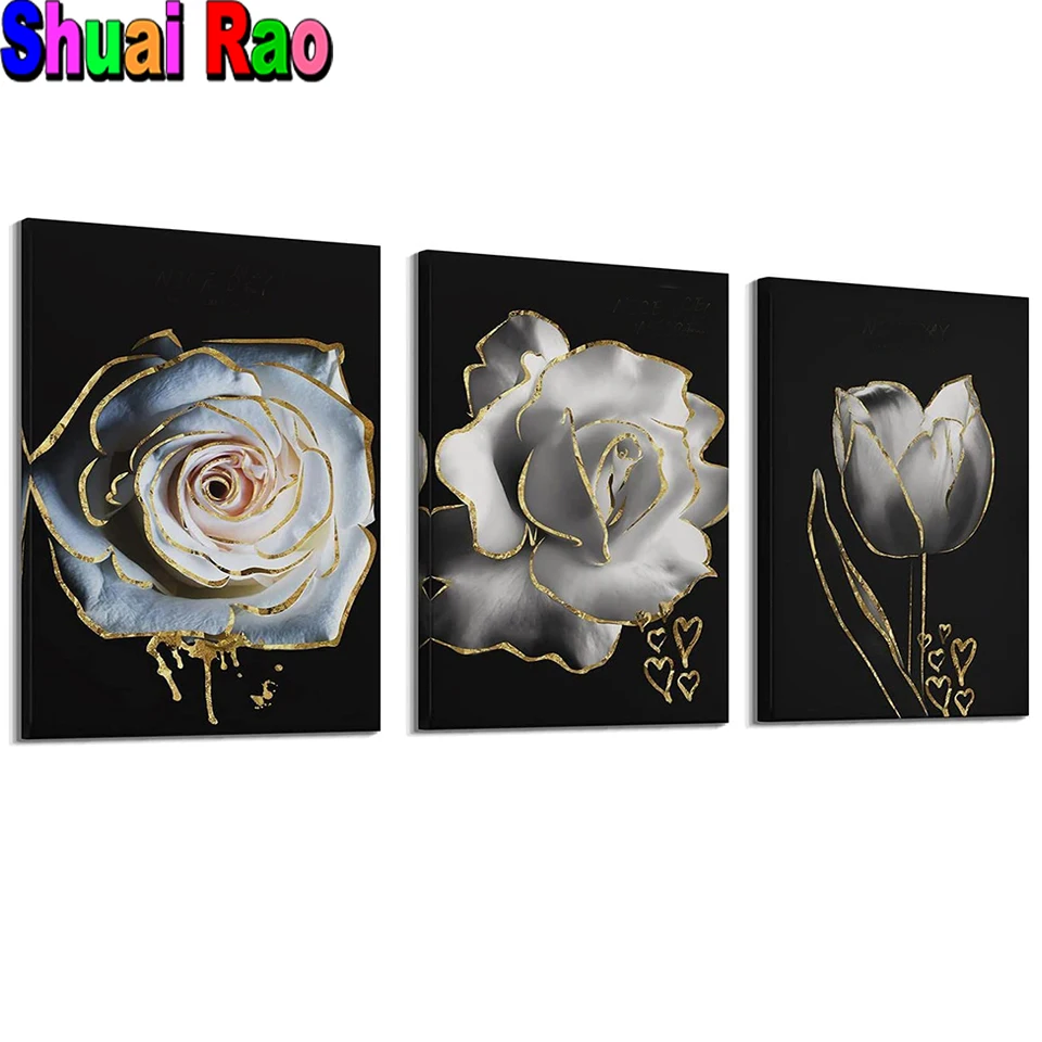 Набор для алмазной вышивки, белая роза, 3 предмета