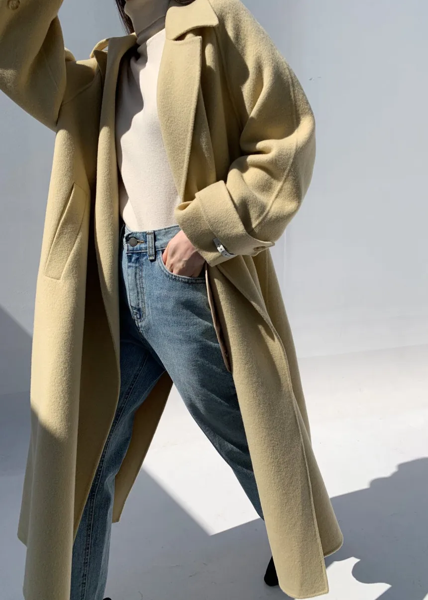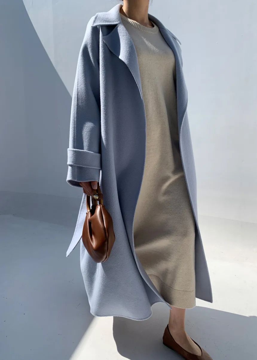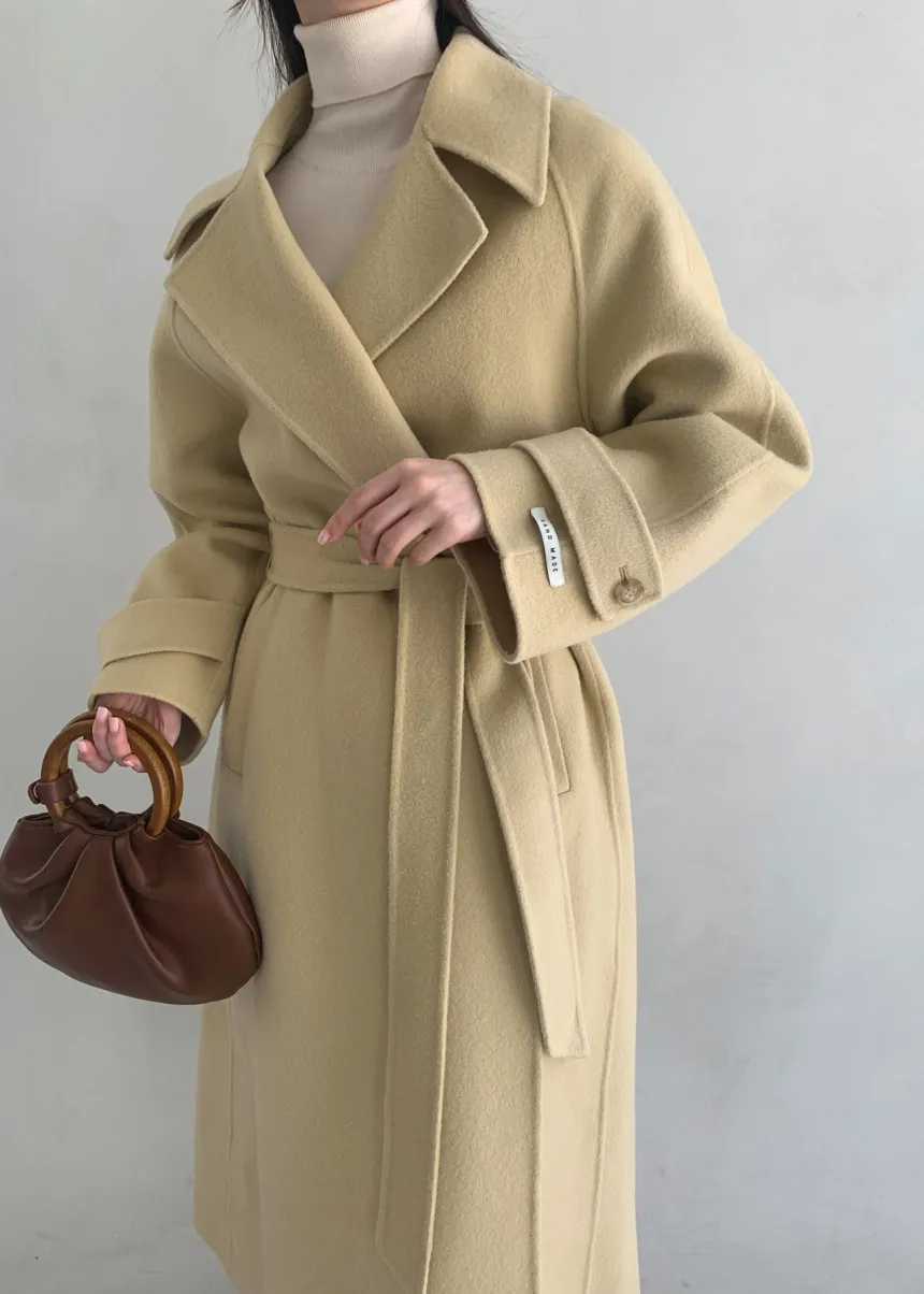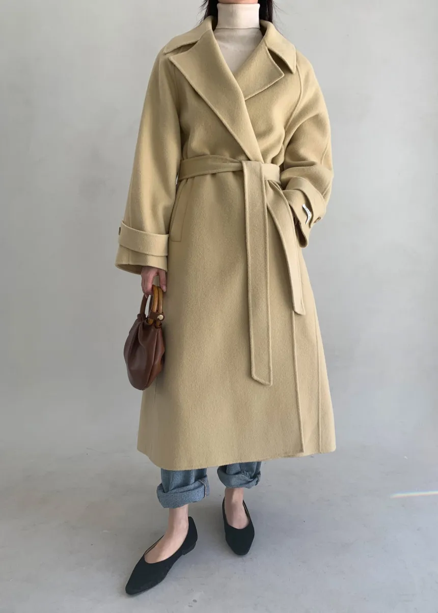 Женский длинный шерстяной кардиган с поясом, с длинным рукавом