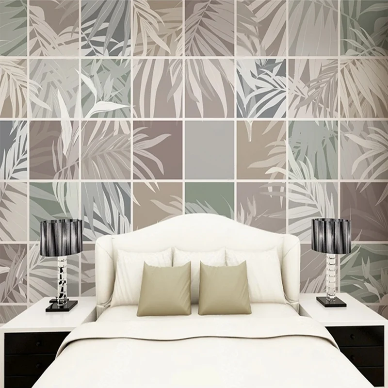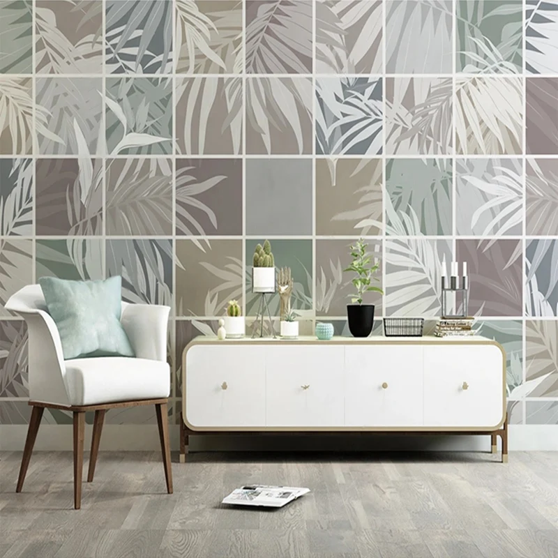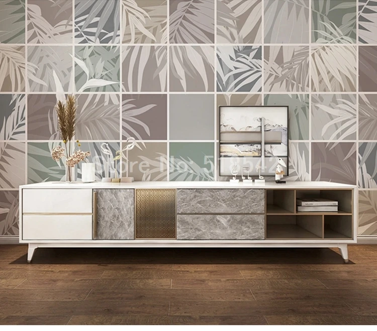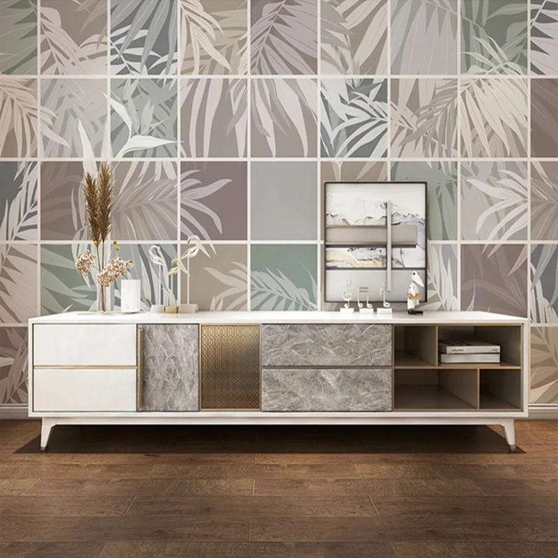 Фотообои на заказ, современная настенная 3D мраморная сетка с растениями и листьями, для спальни, гостиной, кухни, водонепроницаемая холщовая