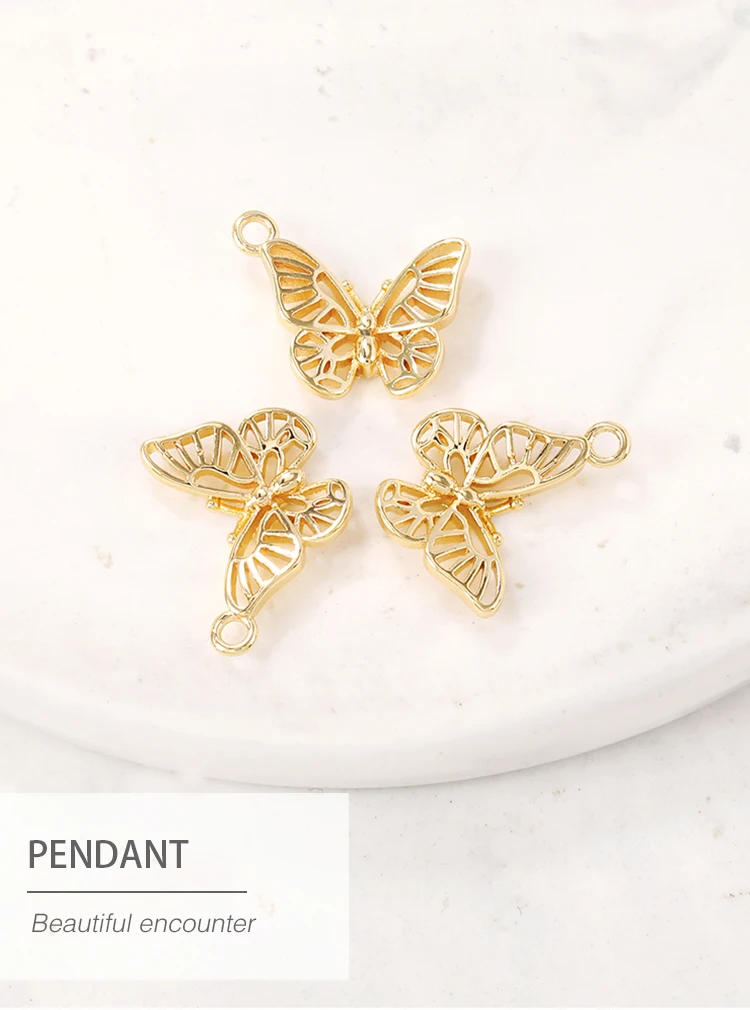 Оптовая продажа с завода, латунные подвески-бабочки золотого цвета, ожерелье, браслет, серьги, ювелирные изделия сделай сам, принадлежности, аксессуары