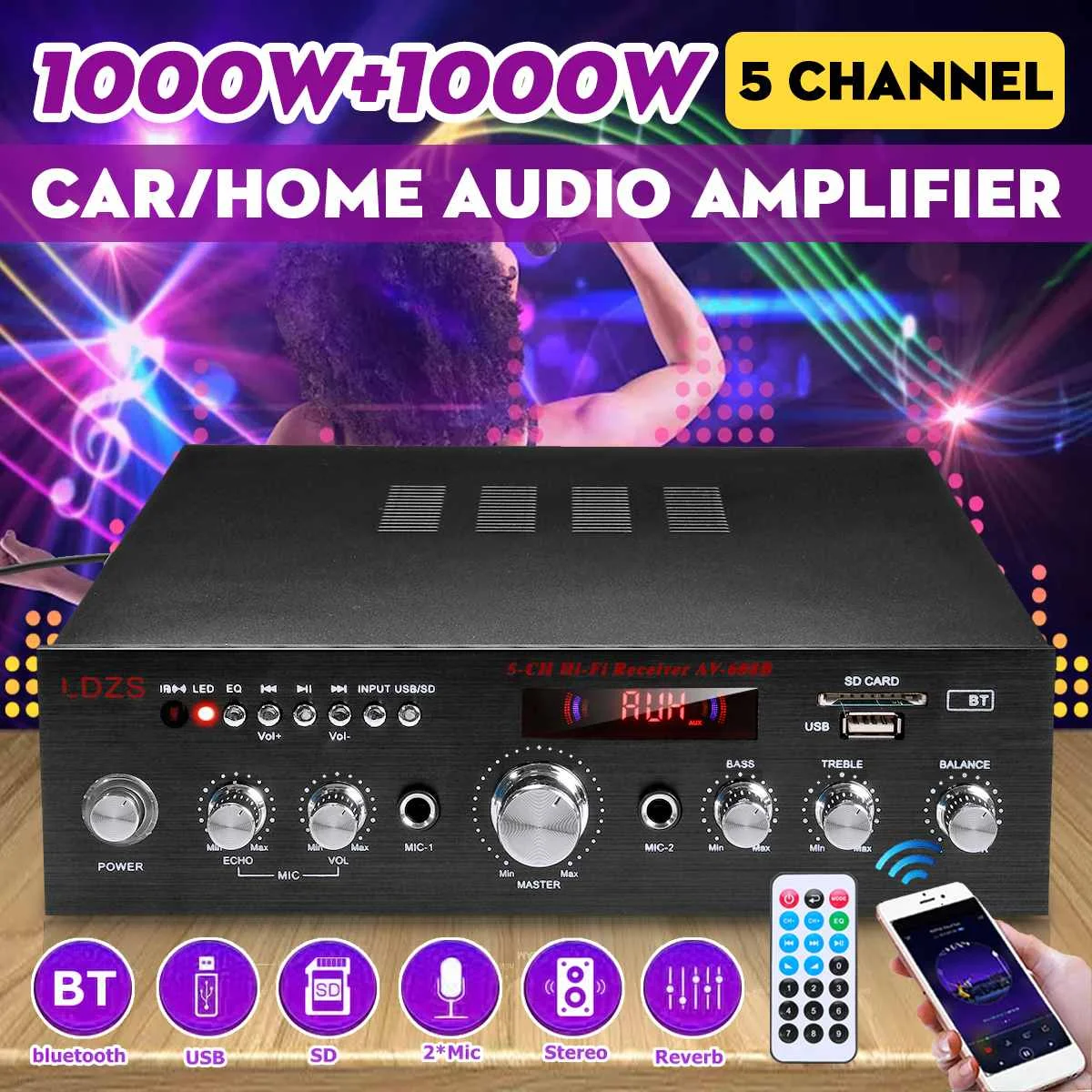 AV608 2000 Вт 5-канальный домашний автомобильный bluetooth аудио усилитель мощности HIFI Цифровой AV Amp динамик пульт дистанционного управления ревербератор 2 микрофона FM USB SD