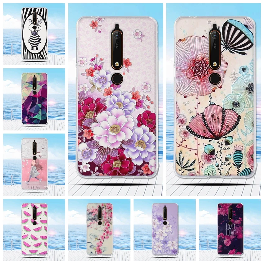 Чехол для Nokia 6 2018 TA-1068 TA-1050 TA-1043 TA-1045, 3D чехол с цветочным рисунком, мягкий силиконовый чехол из ТПУ для Nokia 6,1, чехол