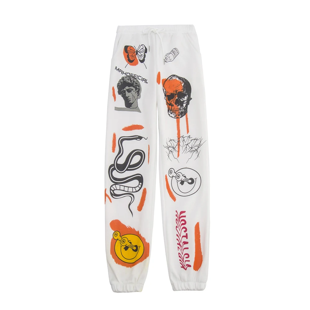 Женские спортивные брюки в стиле Харадзюку С мультяшным принтом, бр...
