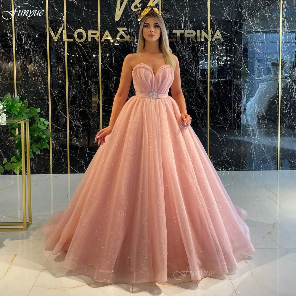 Блестящее Пышное Бальное платье, платье для выпускного вечера, длинное розовое официальное вечернее платье из фатина, 2021