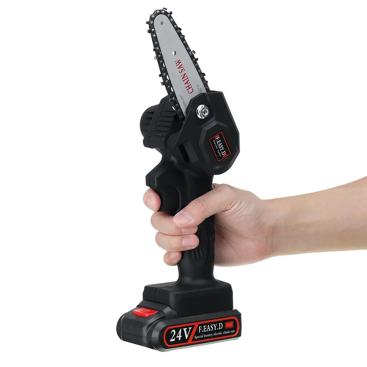 Характеристики:Материал: АБС-пластикМатериал цепи: Высокоуглеродистая стальЦвет: черныйИсточник питания:Литий-ионный аккумуляторНапряжение:24 ВЗубцы цепи:28Цепное колесо:1/4"Применимые варианты: садовый сад/бамбуковая Резка/обрезка/резка дров