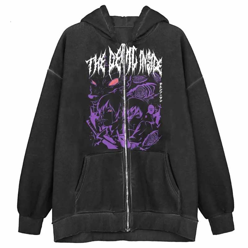 Толстовка в стиле аниме Харадзюку на молнии, свитшот с принтом цепи пилы для мужчин, уличная одежда оверсайз, мужская и женская Повседневная Свободная Толстовка с капюшоном