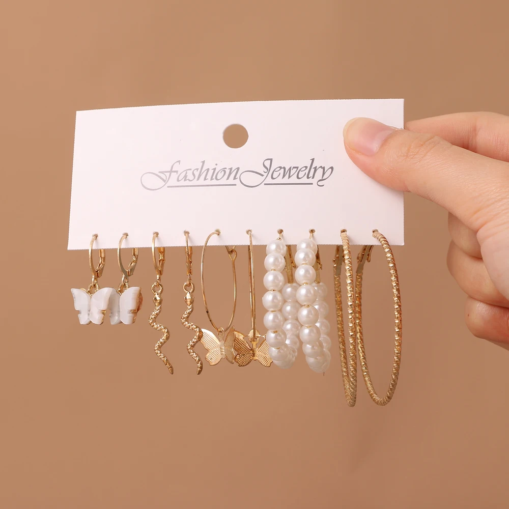 Богемные серьги FNIO в виде золотой змеи, бабочки, Комплект сережек...