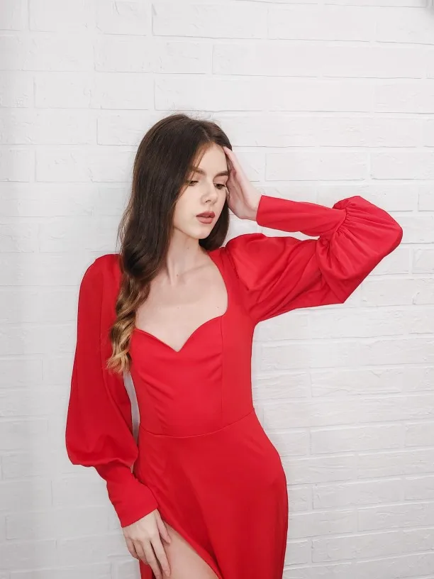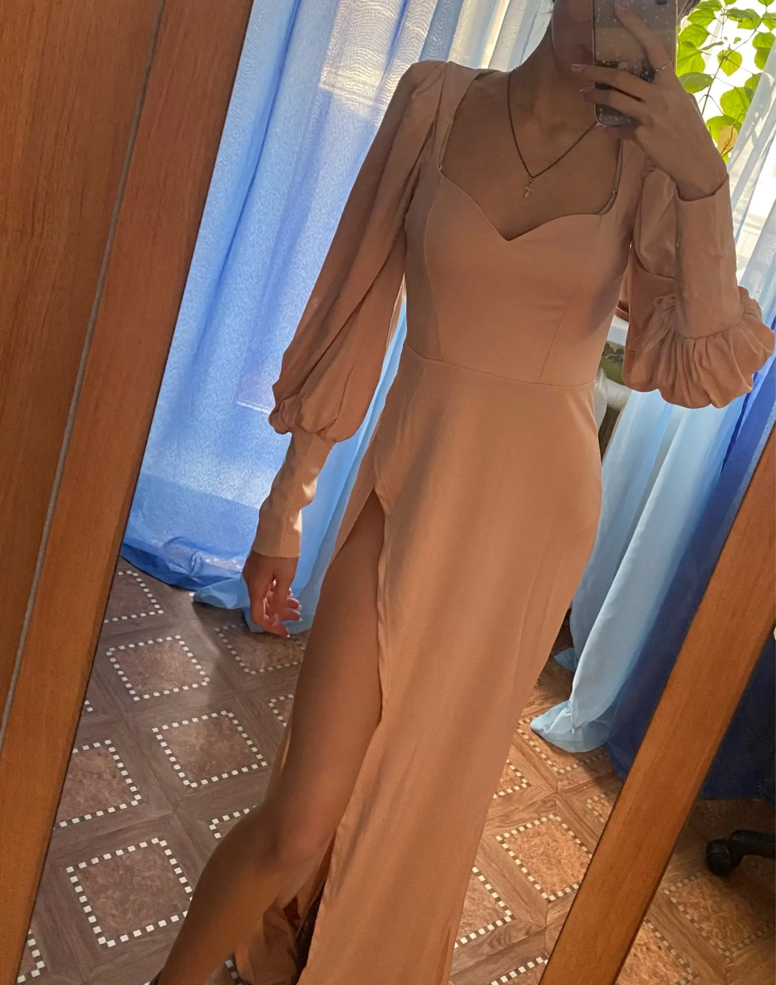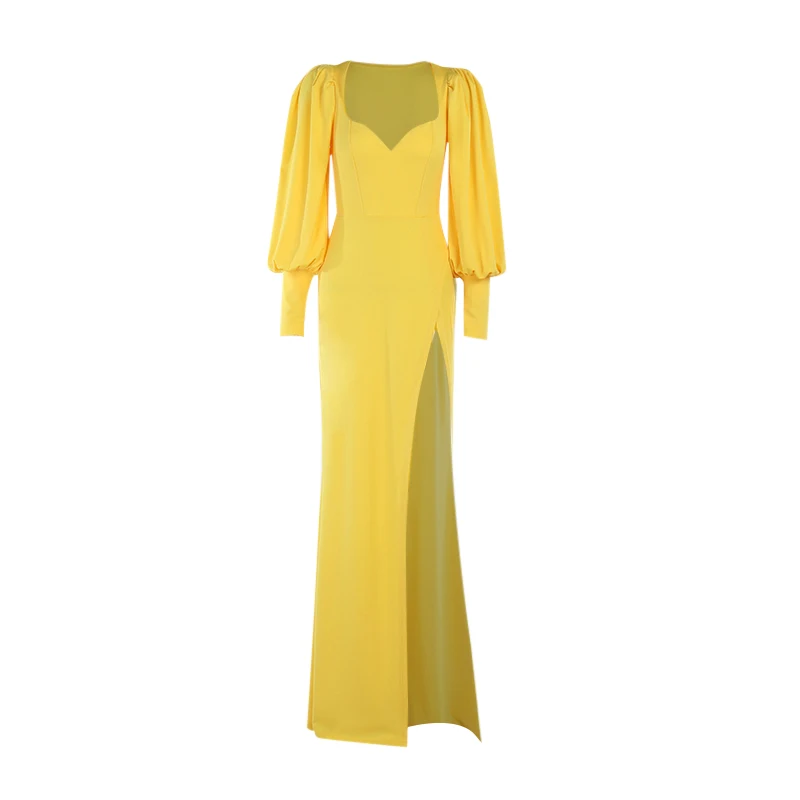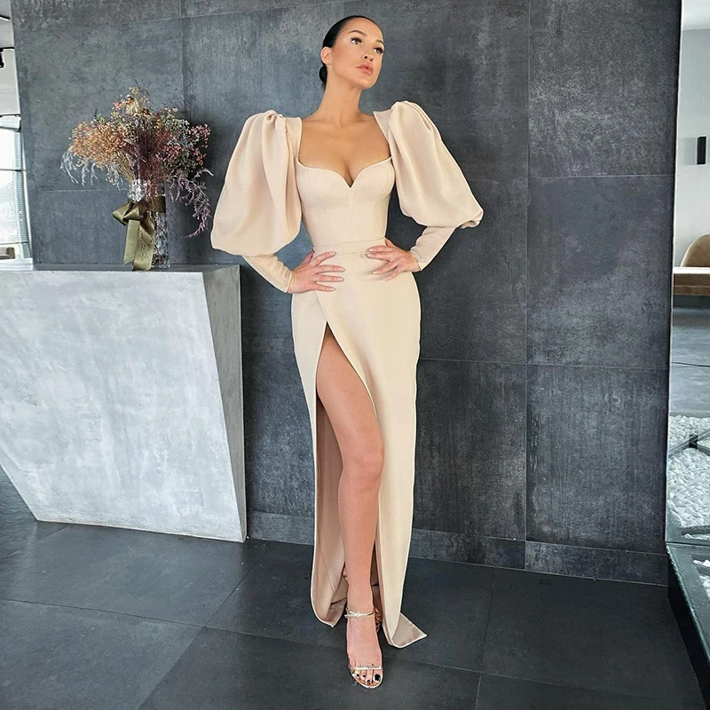 WannaThis, женские платья с рукавами-фонариками, с высоким разрезом, квадратный воротник, осень 2021, винтажный болеро, шикарная праздничная одежда, элегантные женские платья