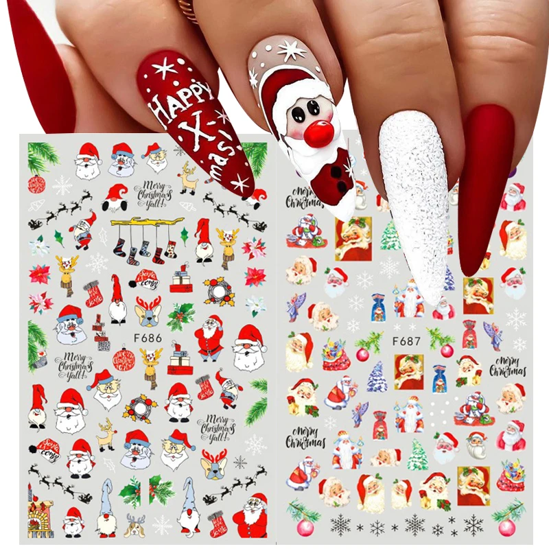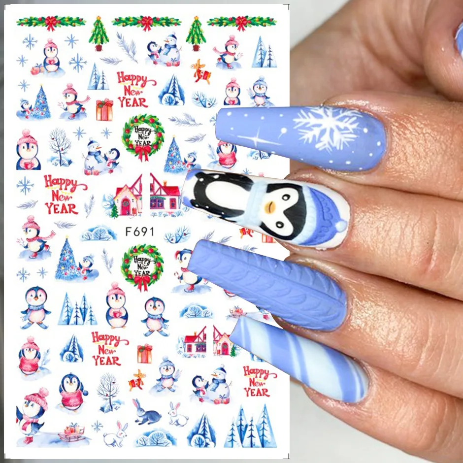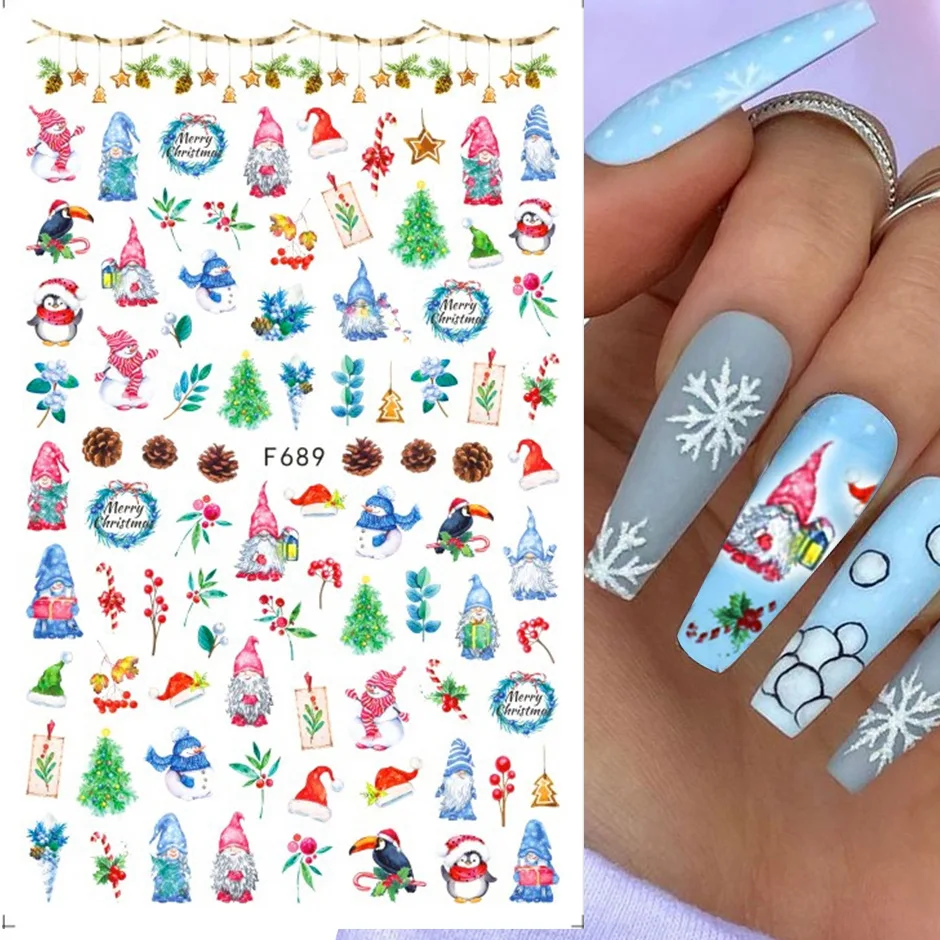 Рождественская 3D наклейка для ногтей, зимние милые Мультяшные слайдеры, снежинка, искусственное дерево, наклейка, УФ-гель, Полис, маникюр, фольга, Декор