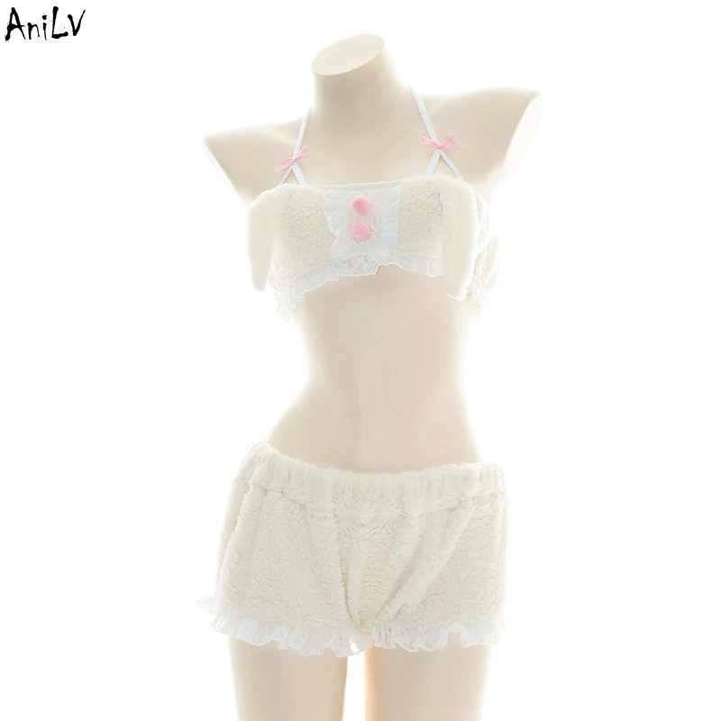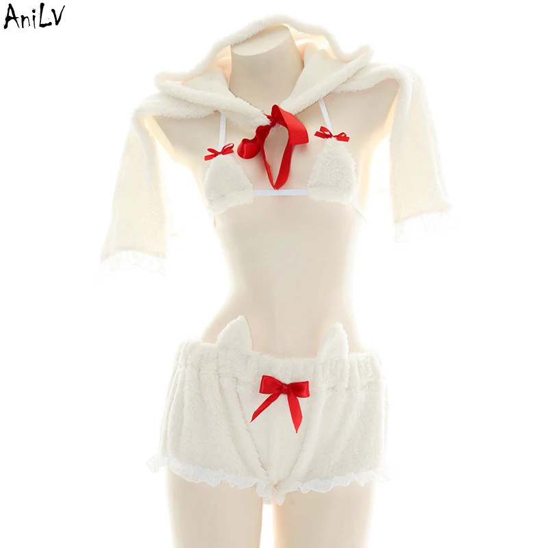 AniLV зимняя плюшевая пушистая серия пижам костюм аниме милая кавайная девочка медведь кошка искусственная Униформа Комплект Косплей