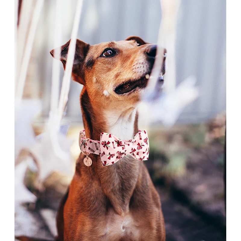 Уникальный стиль лапы хлопок ошейник для собаки с бабочкой розовый карамельный ошейник для щенка для маленьких средних и больших собак Рождество