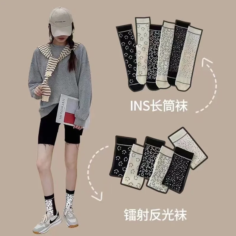 Новинка 2022, модные Светоотражающие хлопковые носки, женские светя...