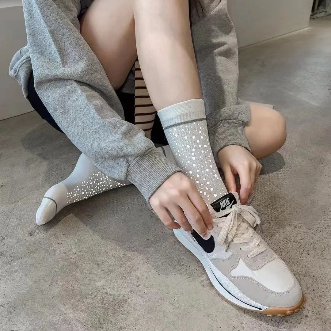 Носки женские, со светоотражающими звездами, блестящие стразы