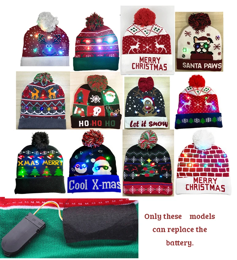 Рождественские шапки, вязаные шапки, теплые в осенне-зимние сезоны, инновационное светодиодное освещение, яркие огни, создающие праздничную атмосферу;