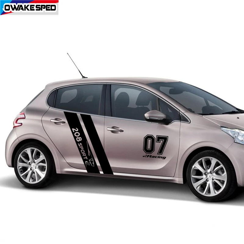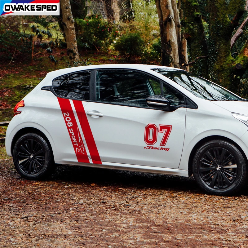 1 компл. Гоночный Стайлинг Автомобильная дверь боковая наклейка Автомобильный кузов Декор виниловые наклейки для PEUGEOT 208 GTI 3-5 двери спорт издание полосы