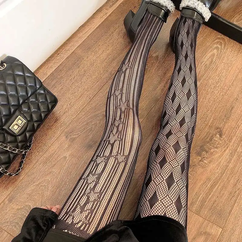 Ажурные колготки в стиле Харадзюку AB, Женская Клубная одежда с разными узорами, колготки для вечерние, сексуальное нижнее белье, косплей, готические костюмы, Medias