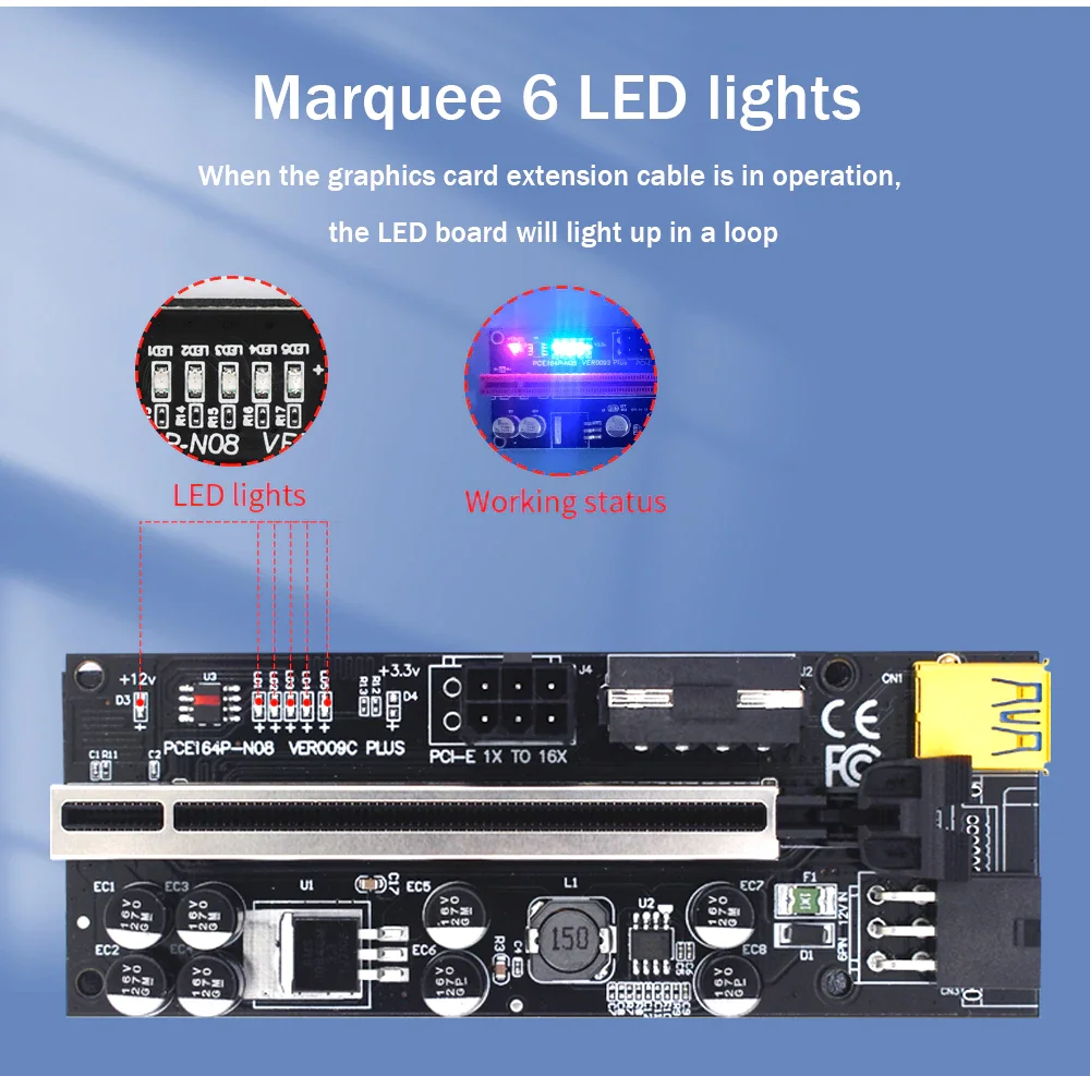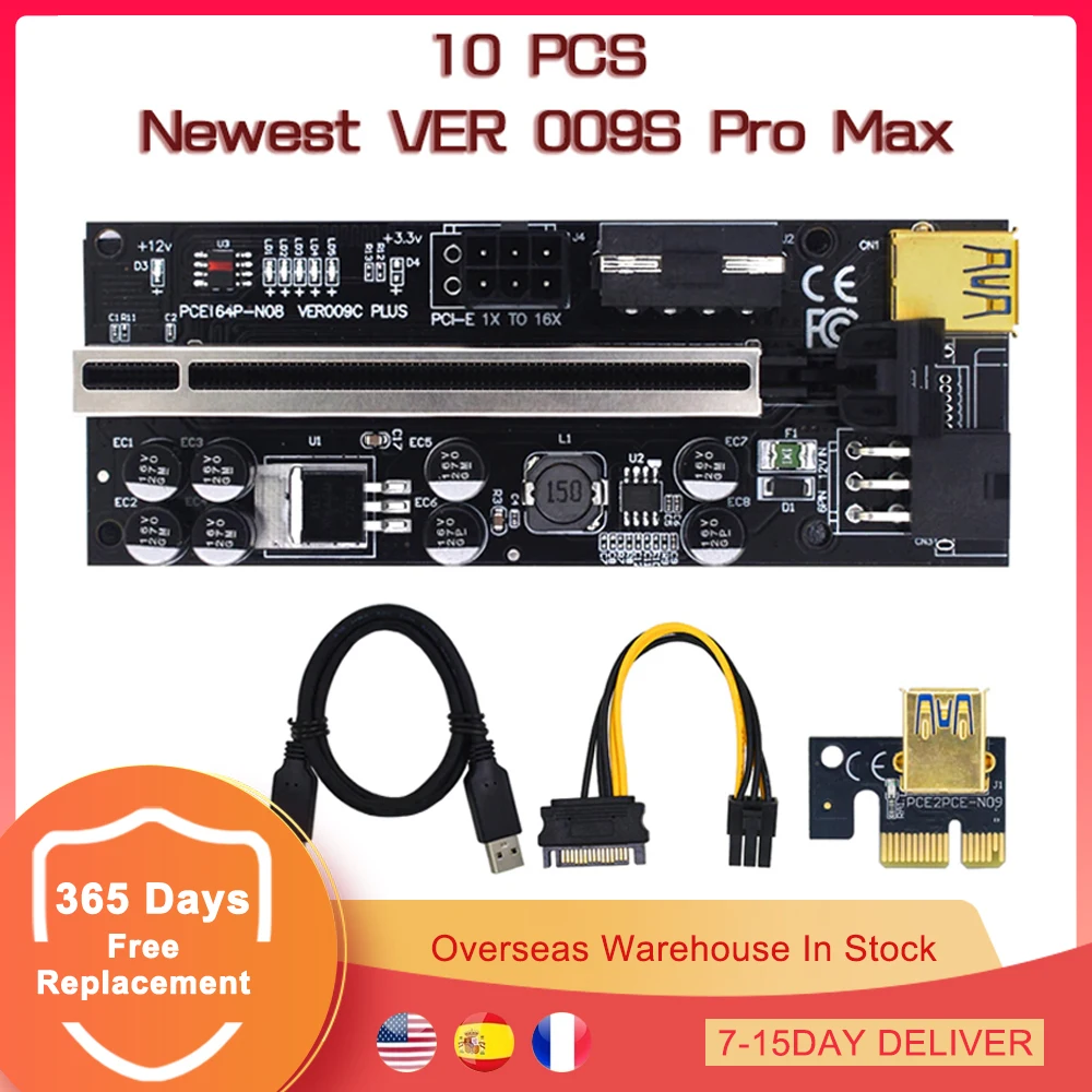 10 шт., Райзер-карта VER009C PCIE, VER 009C PLUS PCI Express PCI-E X1 на X16, графическая карта, адаптер-удлинитель, Майнер ETH BTC