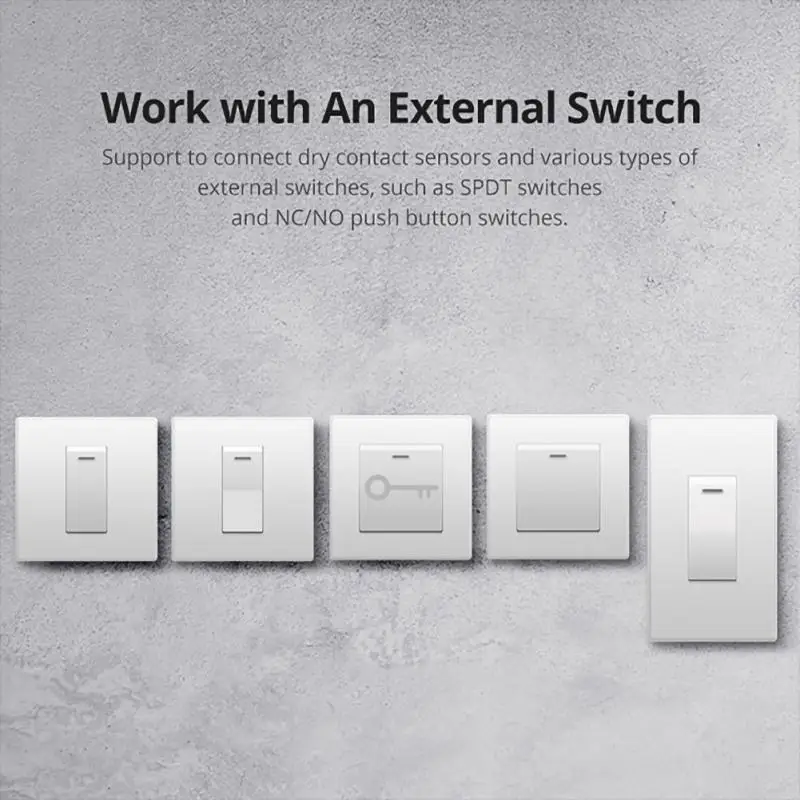 MINIR2, в качестве усиленного мини двустороннего DIY smart switch, был переработан, чтобы поднять безопасность и производительность до оптимального уровня. Старая версия MINI имеет внешнюю антенну с сильным электричеством, но антенна minir2 полностью внутри, что обеспечивает вам душевное спокойствие, чтобы использовать его для управления вашими устройствами. Кроме того, интерфейс S1 и S2 окрашен в серый цвет, который отличается от других интерфейсов ввода и вывода, чтобы в дальнейшем напоминать вам не подключать сильный ток к обоим интерфейсам. 2KV Испытание на перенапряжение соответствует стандарту 1KV, который требуется Сертификация CE, и он прошел сертификацию ANATEL, поэтому MINIR2 дает вам достаточно безопасности, чтобы обеспечить вам безопасное использование. Маленький и компактный смарт-переключатель используется для различных видов коробок переключения, даже самый маленький Стандартный Переключатель ЕС. Удобно автоматизировать бытовую технику в приложении eWeLink с помощью смартфона или голосовой команды. Поддержка 3 режимов запуска импульсного режима (работает с кнопочными переключателями), edge mode (работает с переключатели SPDT) И следующий режим (работает с переключателями с отметкой «ON» и «OFF» и датчиками с выходом сухого контакта). Он поддерживает режим «сделай сам» (предназначен для разработчиков), который позволяет пользователям интегрировать MINIR2 в третьи по всему миру вечерние системы управления с открытым исходным кодом для достижения контроля локальной сети без облачного сервиса, такие как домашний помощник, openHAB, ioBroker. И т. Д. Для документа протокола и кода для инструмента «сделай сам» (обновление),