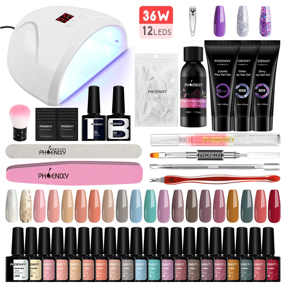 Phoenixy полный маникюрный фотогель 54 Вт УФ светодиодный лампа с инструментами для дизайна ногтей типсы верхнее покрытие Базовое покрытие