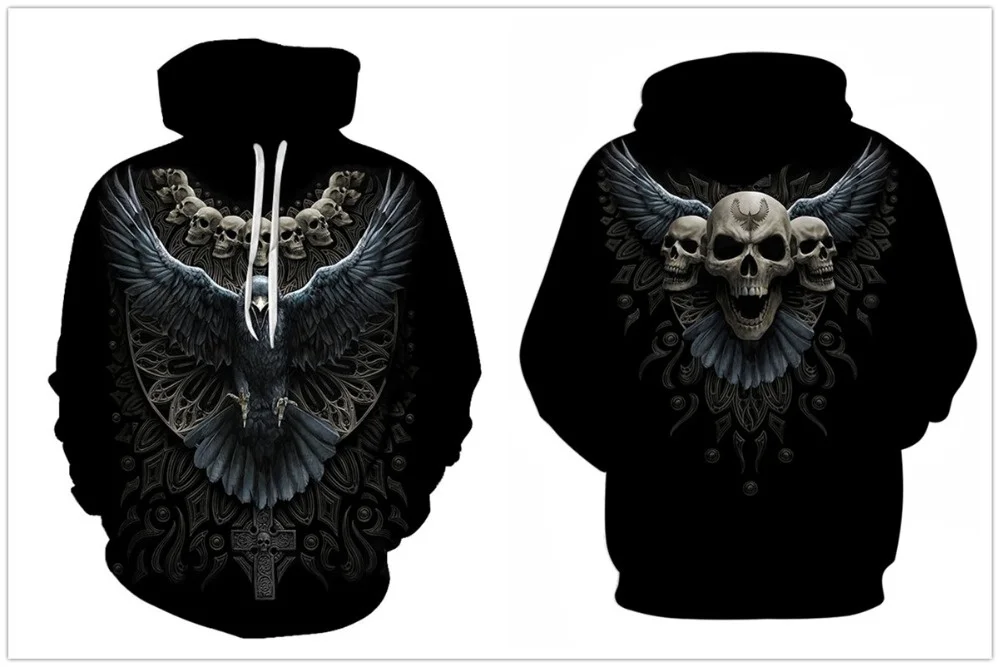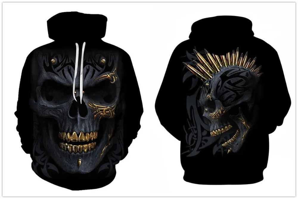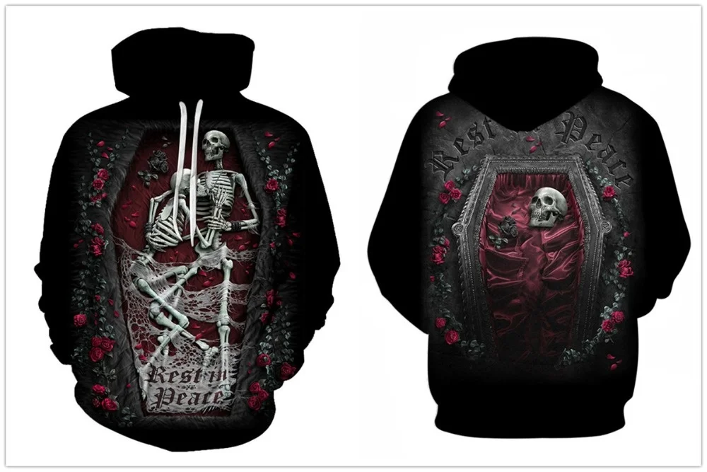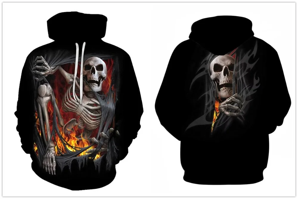 Толстовка с 3D-принтом черепа для мужчин и женщин, модная повседневная спортивная одежда, худи в уличном стиле, готика и уличные танцы, весна-осень