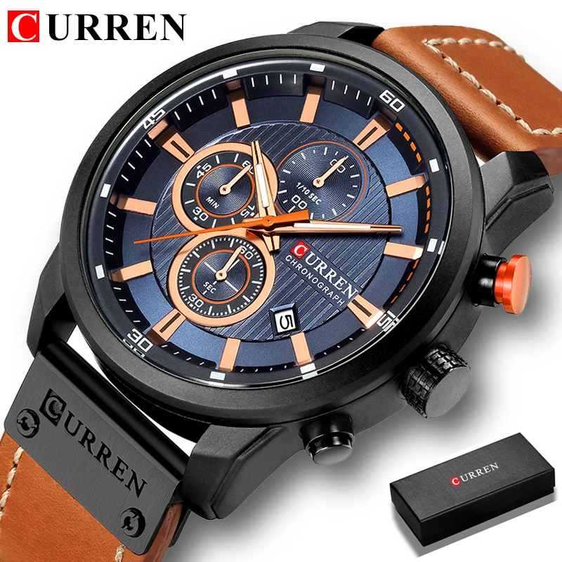 Часы CURREN Мужские, повседневные, с кожаным ремешком, кварцевые