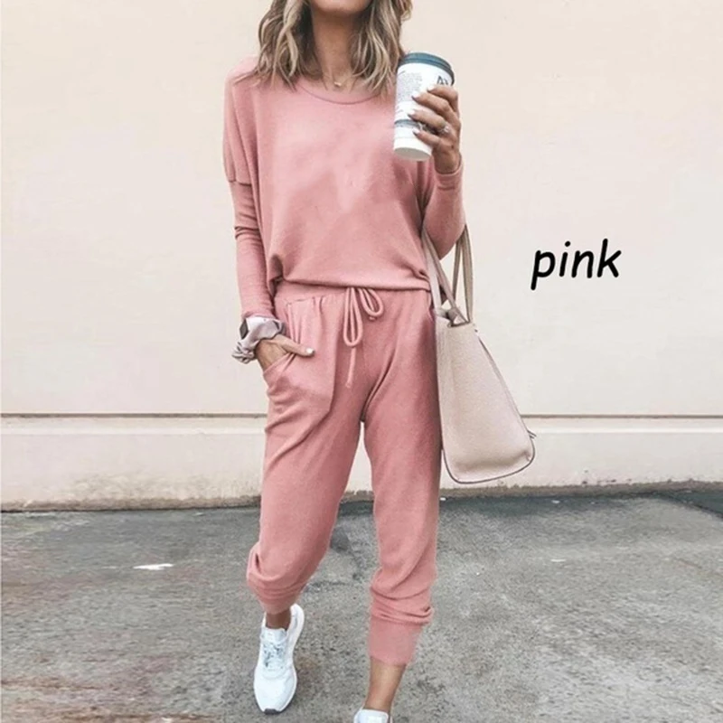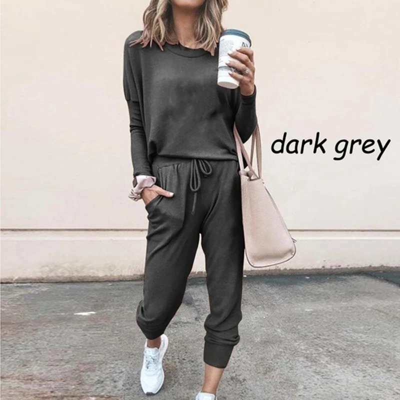 Новинка, женский свободный однотонный повседневный костюм с длинным рукавом, женский свитер, брюки, спортивный костюм, спортивный костюм