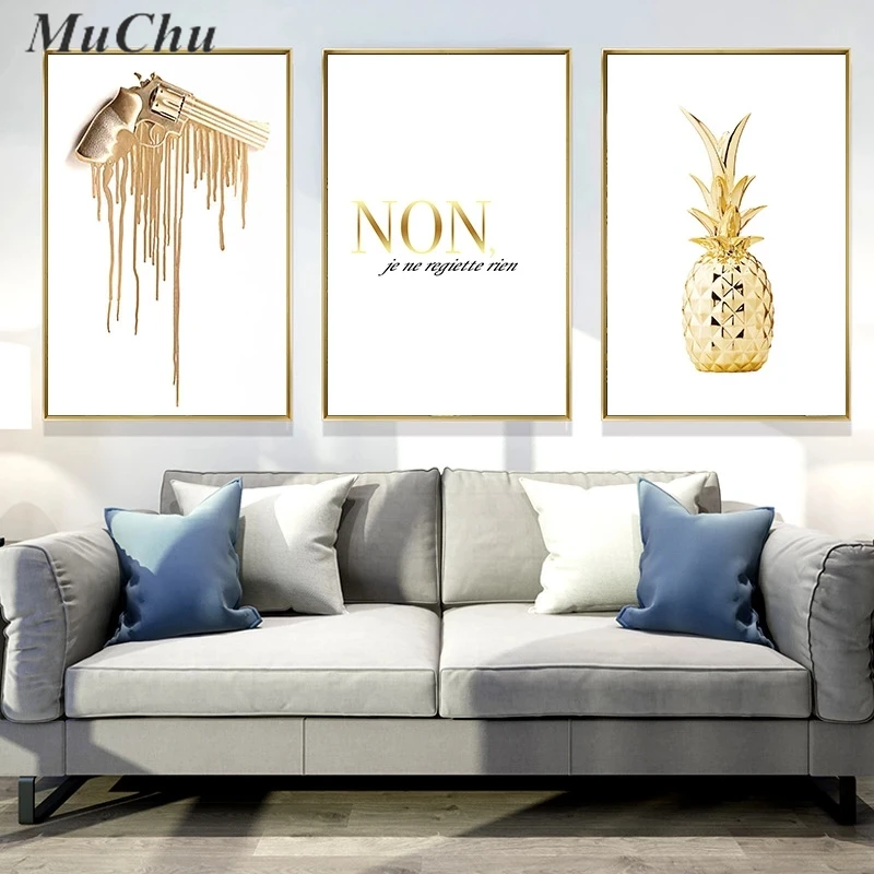 Золотистый ананас любовь простые буквы живопись сердечник нордический стиль гостиная Декор эстетика Диван стена искусство холст живопись