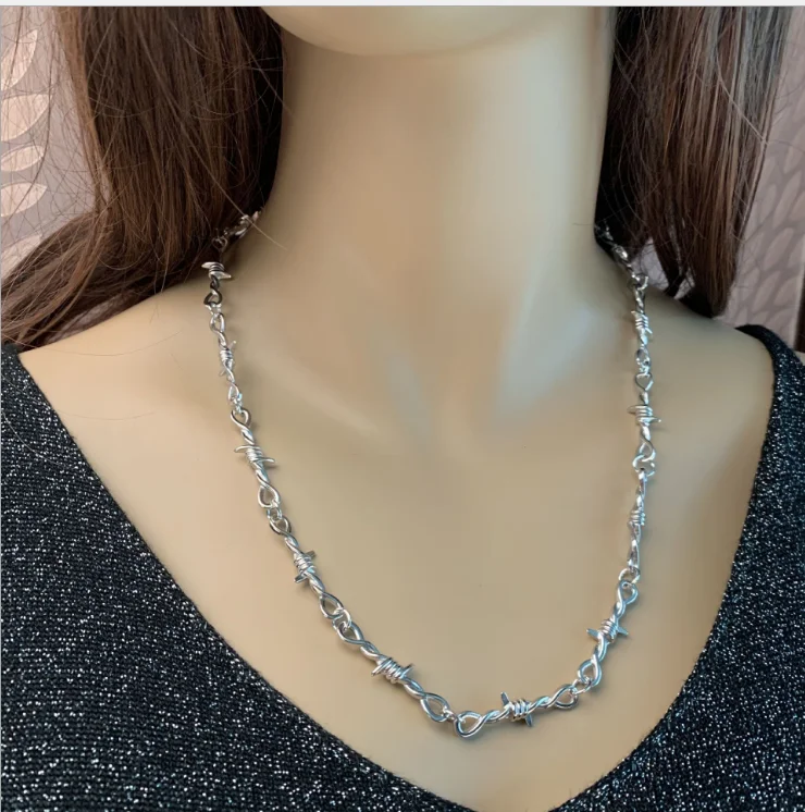 Короткое ожерелье унисекс из железной проволоки, Женское Ожерелье В Стиле Хип-хоп, готический панк стиль, колючая проволока, маленькая цепочка с шипами, чокер, подарки