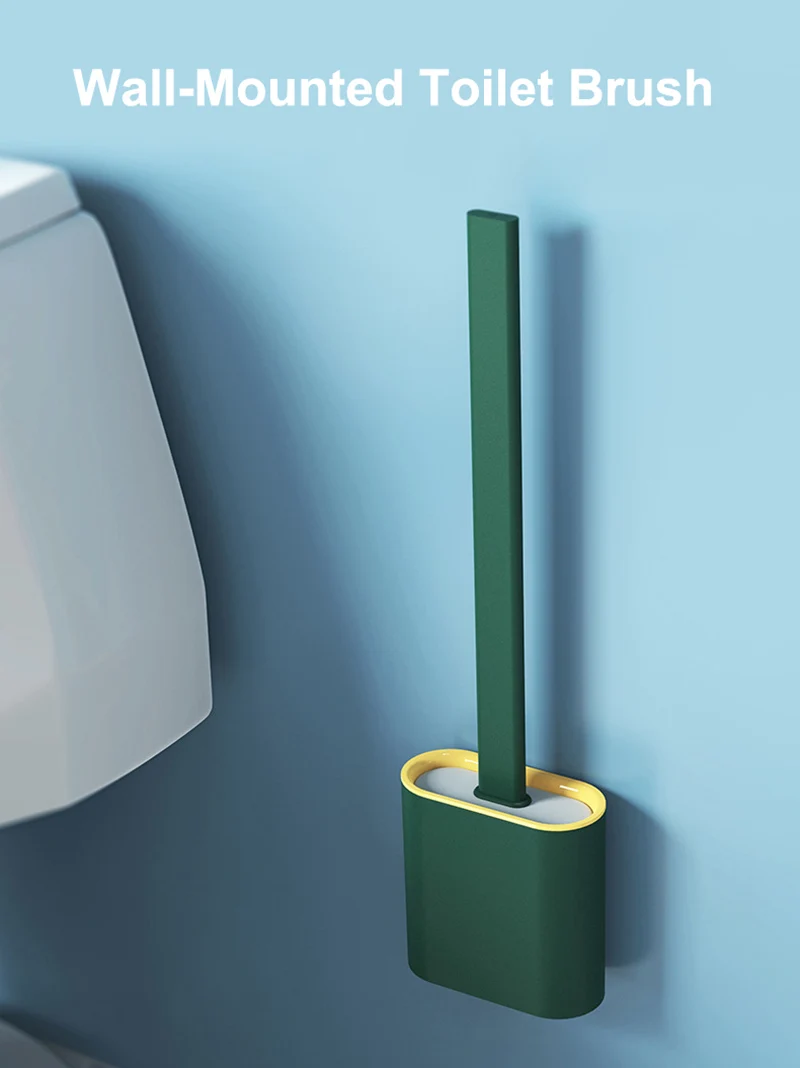 Силиконовая плоская щетка для унитаза с держателем, черная щетка для очистки туалета с длинной ручкой, настенные аксессуары для туалета, ванной комнаты