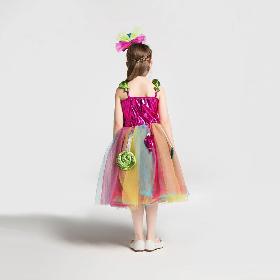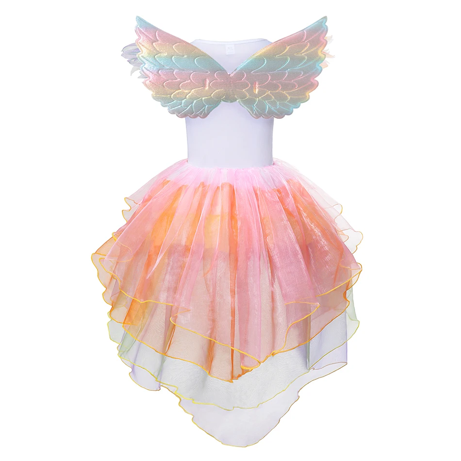 Радужные платья для девочек с единорогом, платья принцессы для вечеринки, Детский Рождественский костюм для косплея на Хэллоуин с повязкой на голову, крылья, искусственные
