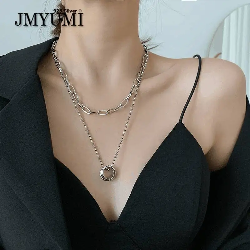 Ожерелье JMYUMI из стерлингового серебра 925 пробы с длинными кисточками и круглыми бусинами для женщин, простые аксессуары на цепочке до ключиц, оптовая продажа