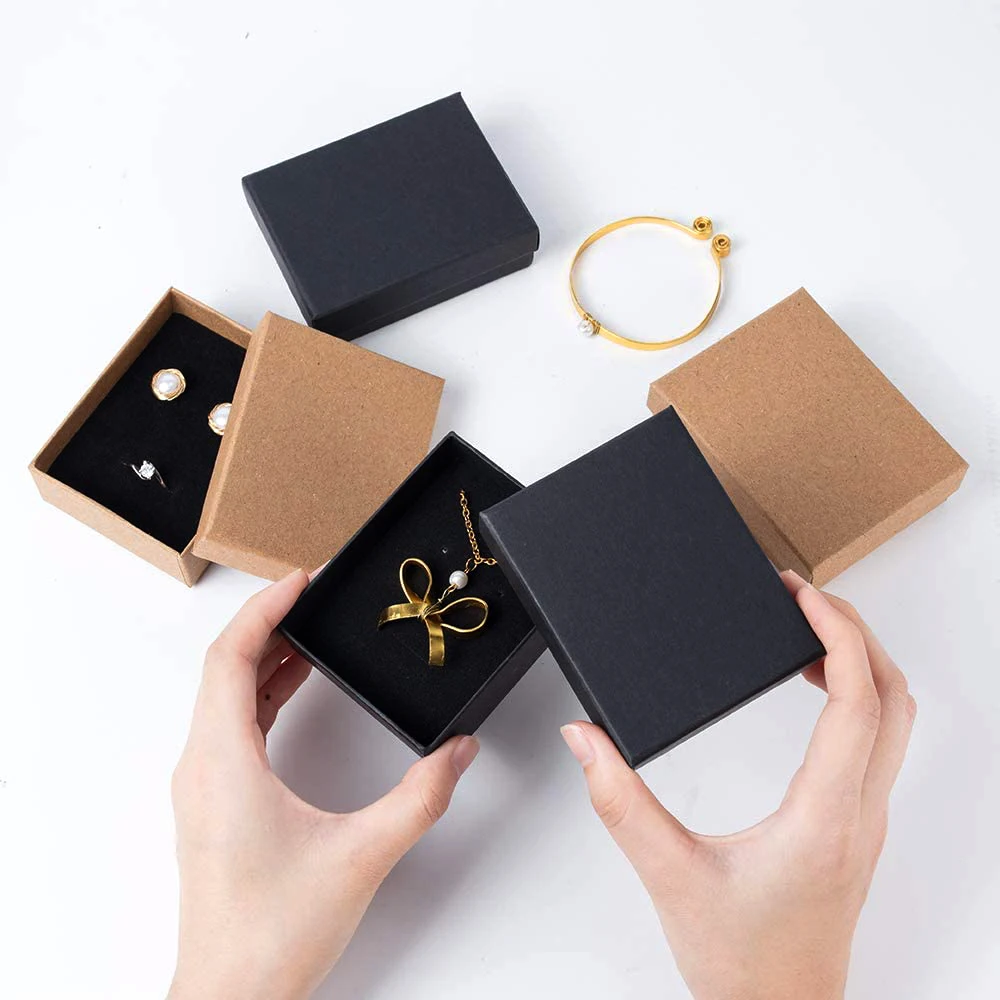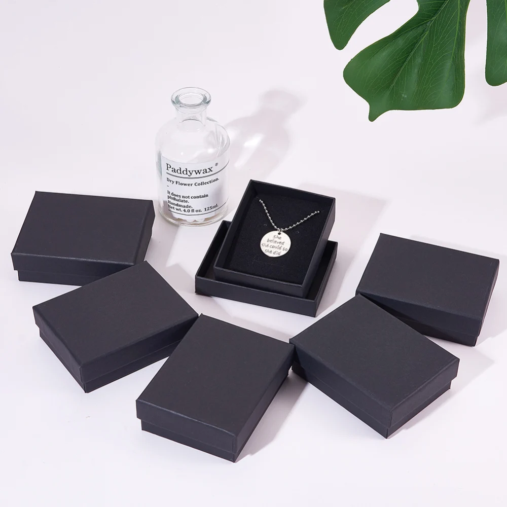 12 шт. прямоугольные картонные коробки для украшений для женщин кольцо, ожерелье, серьги Подарки Упаковочная коробка 9x7x3 см с губкой внутри