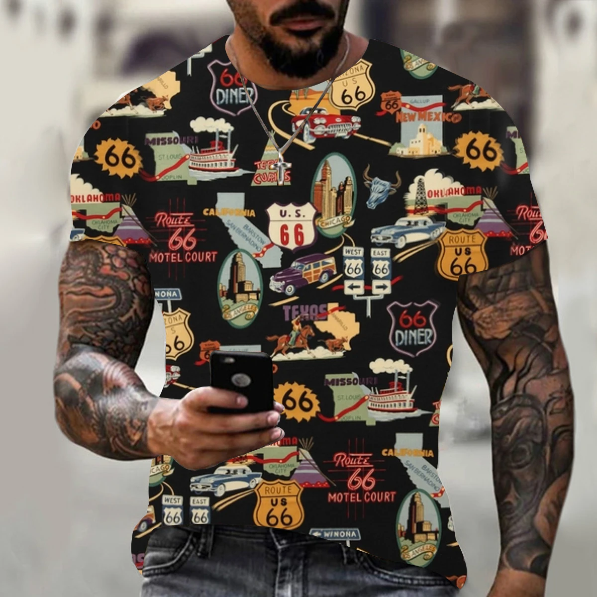 Мужская футболка в стиле ретро с 3D-принтом, Европейская и американ...