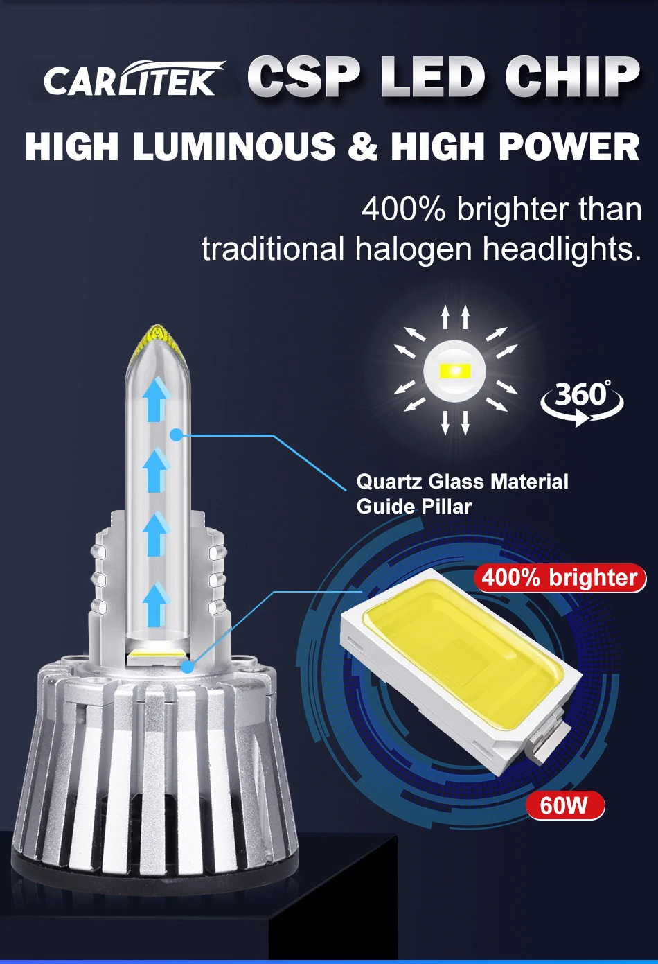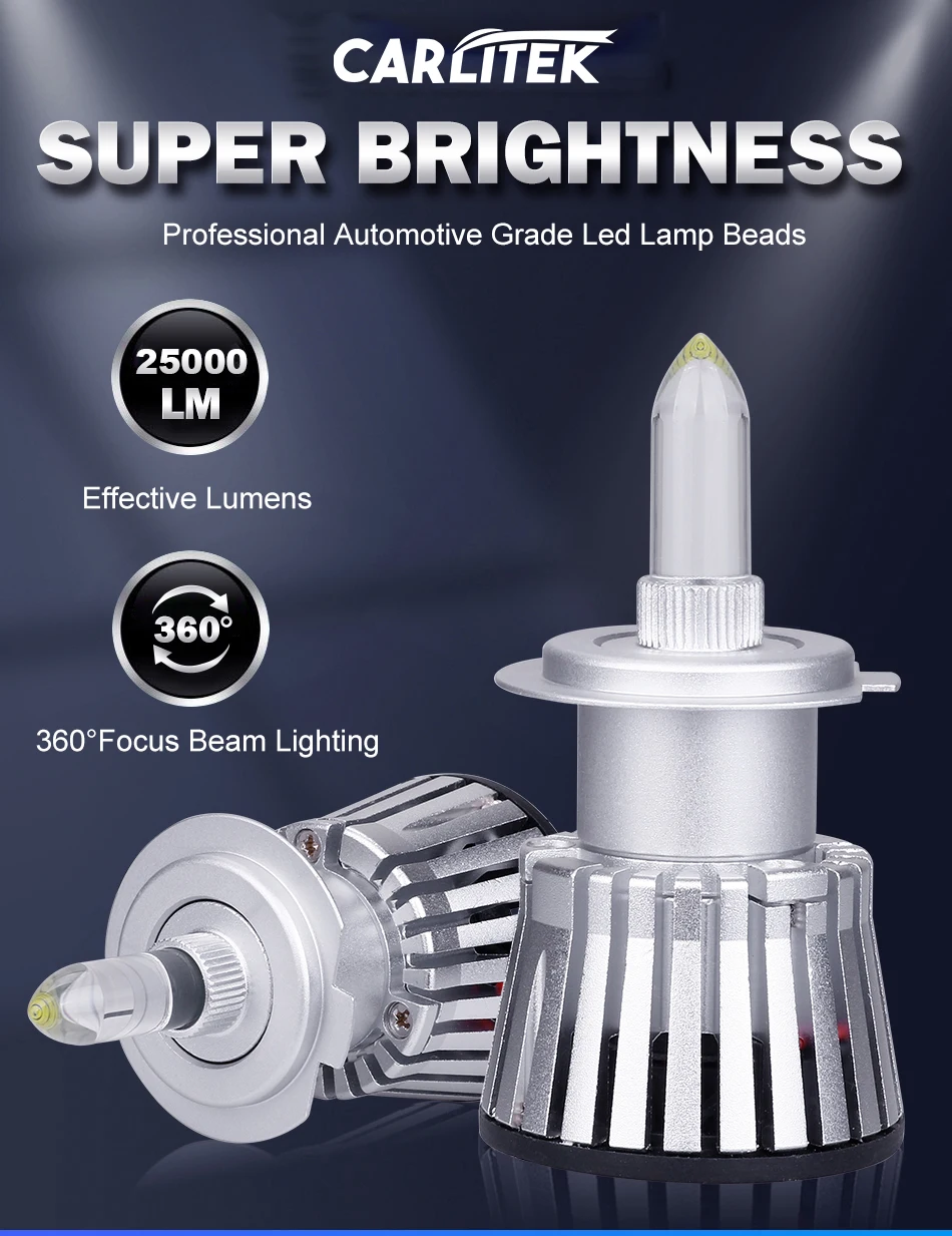 Светодиодная Автомобильная фара Carlitek H7, 360 градусов, линза проектора, 9005 лм, H8, H9, H11, светодиодные лампы для фар HB3 9006, HB4 6000, автомобильные фары K