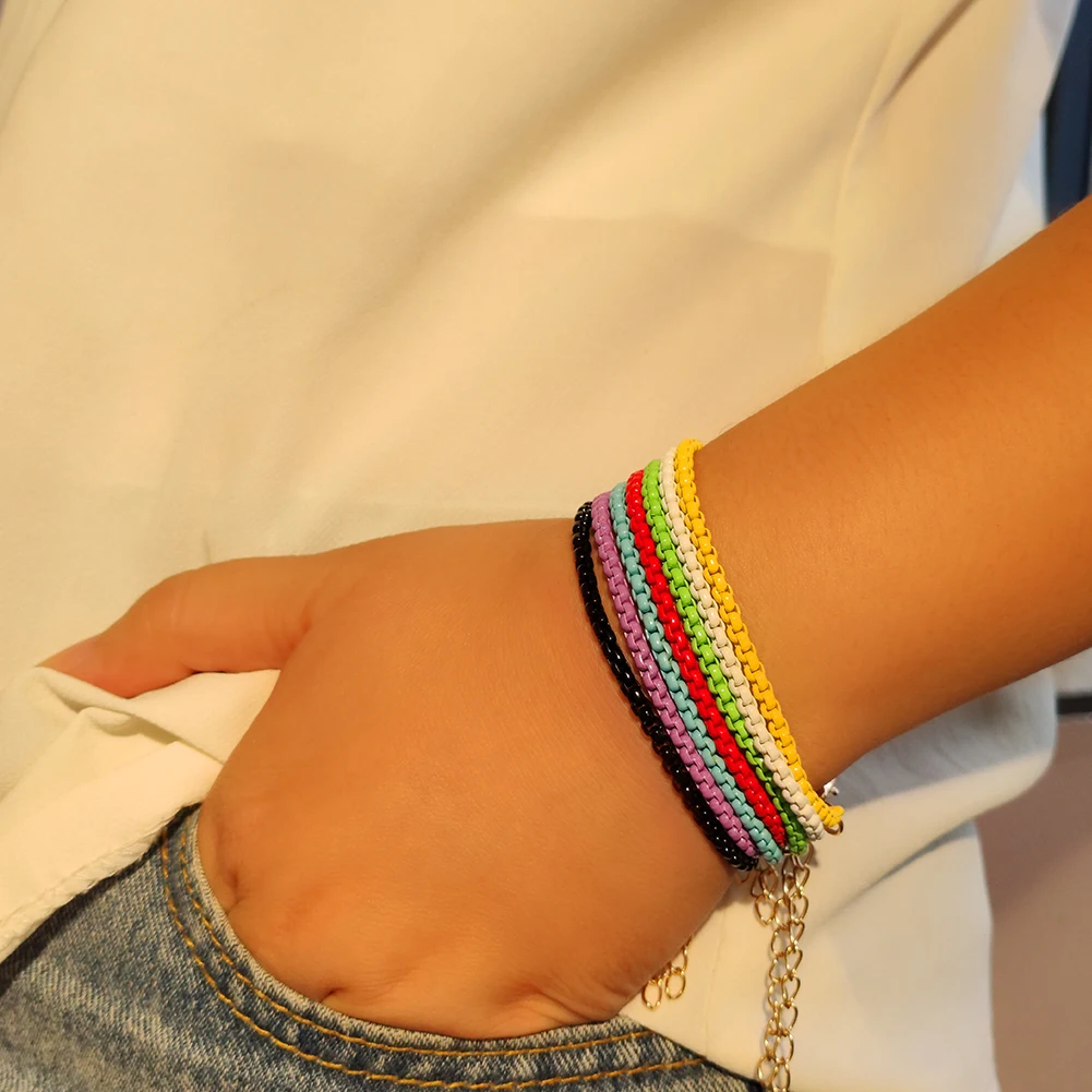 Модные корейские браслеты 2021 с радужными гвоздиками, медведем, воздушный шар, собака с фианитом, женские многоцветные эмалированные металлические браслеты-цепочки, ювелирные изделия своими руками