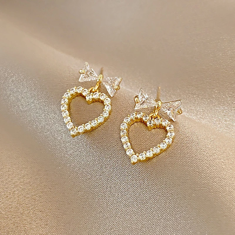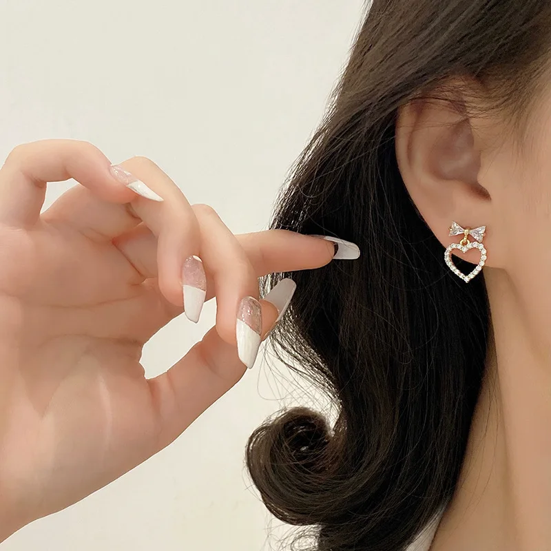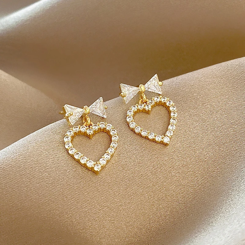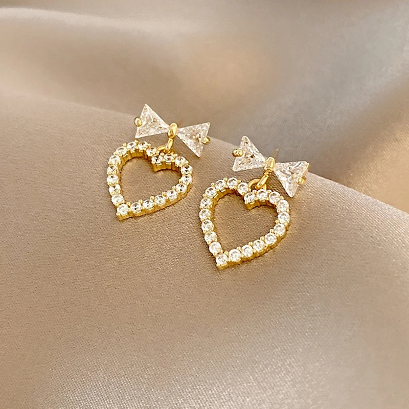 S925 Серебряные серьги Стразы ЛЮБОВЬ сердце лук висячие серьги 2021...