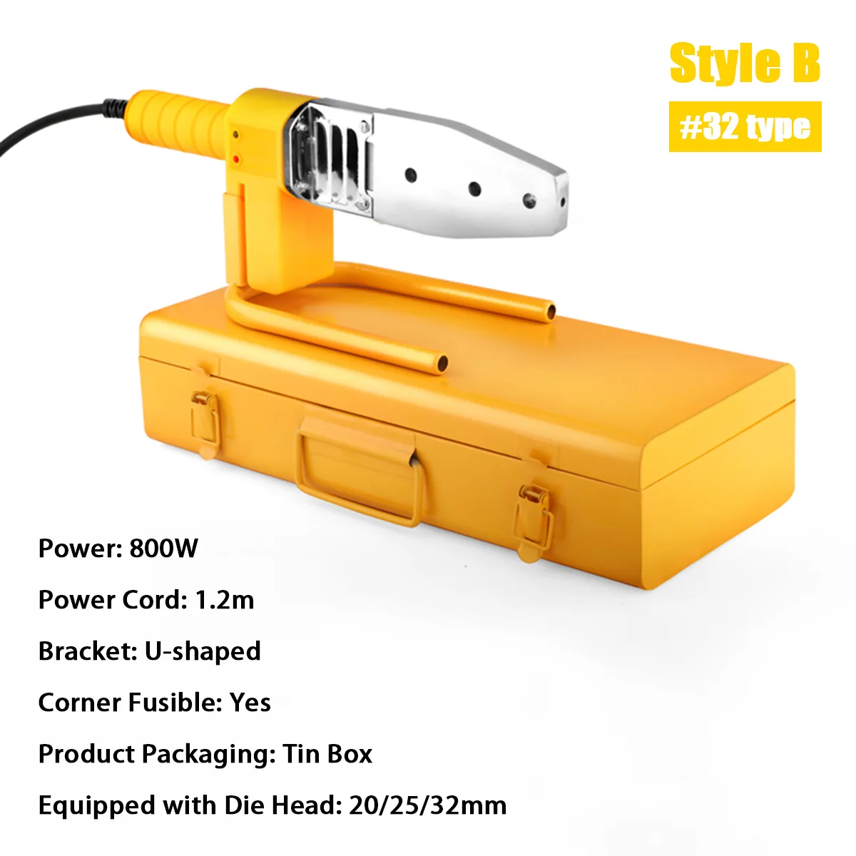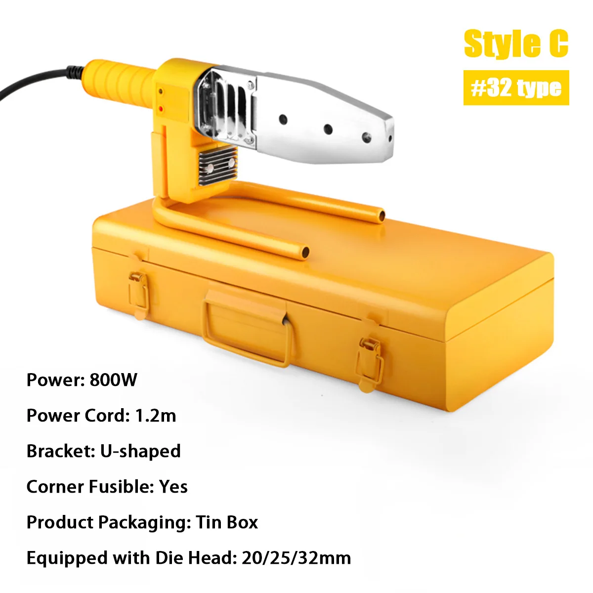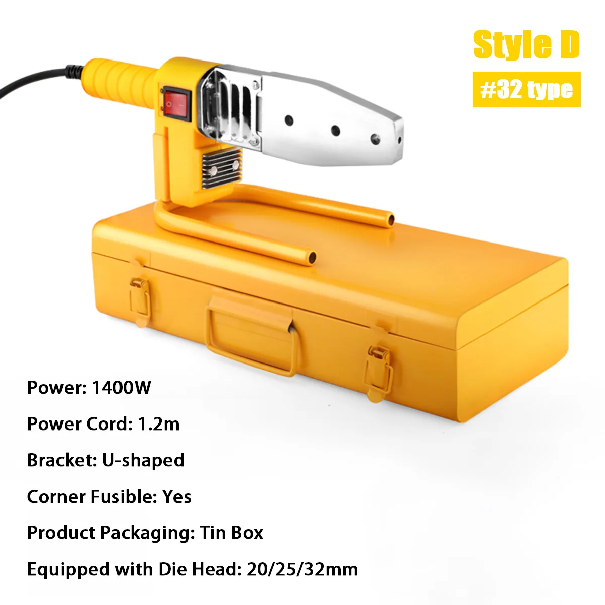 Особенности:-Для сварки пластиковых труб, таких как PP / PPR / PB / PE / PP-C трубы и т. Д.-Предназначен для длительного использования.-Нескользящая ручка, удобно брать.-Утолщенная стальная панель, быстрая теплопроводность.-Толстая сенсорная головка золотого цвета, быстрый нагрев горячего расплава.-Подходит для трубопроводного строительного оборудования.Характеристики:Название продукта: комплект для сварки трубТип: 600 Вт/800 Вт/1000 Вт/1400 ВтМатериал: металлЦвет: желтыйВилка: штепсельная вилка европейского стандартаСкорость нагрева: 1 минПодходит для: PPR / PB / PE трубОтносительная влажность: от 45% до 95%Температура нагрева: 0 ~ 320 ℃ / 32 ~ 608 ℉Температура окружающей среды: -20 ~ 50 ℃ / -4 ~ 122 ℉Контроль температуры: цифровой контроль температуры