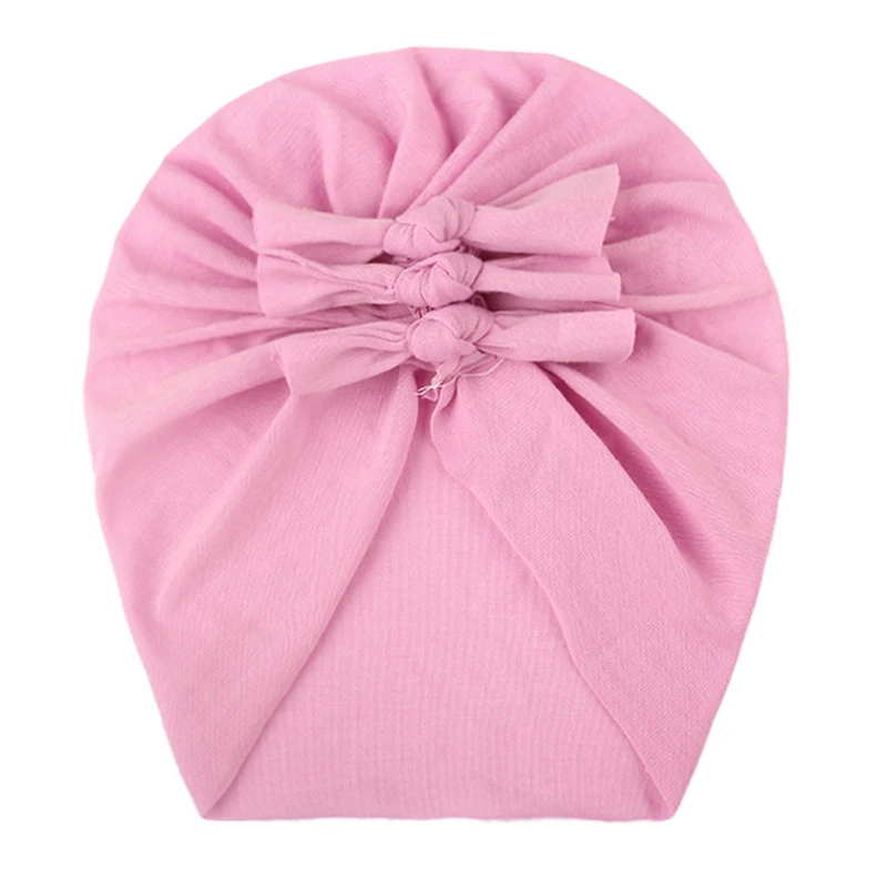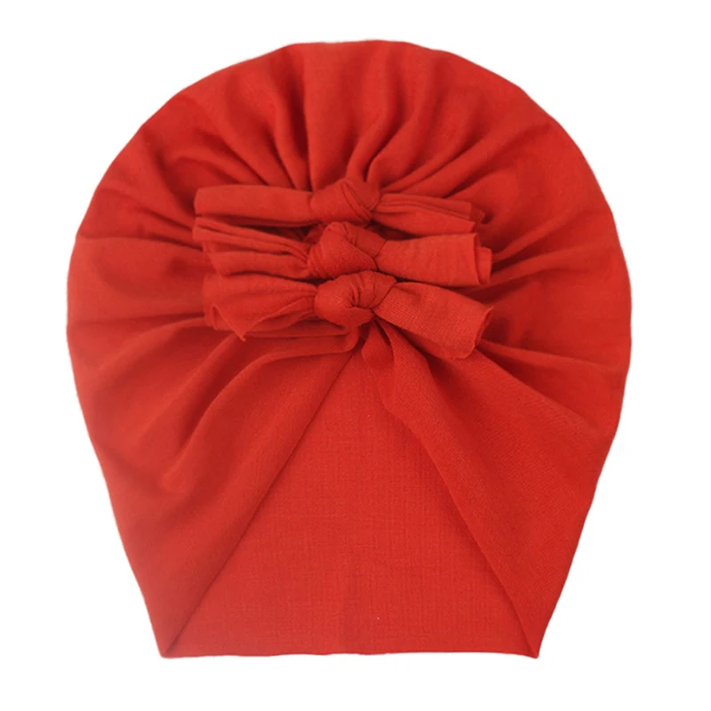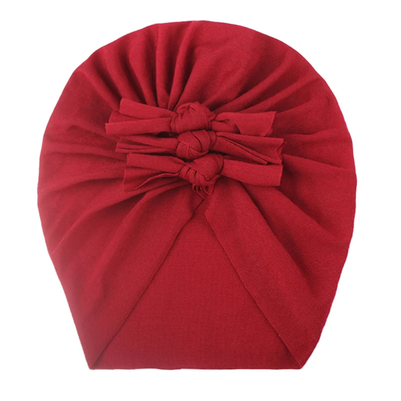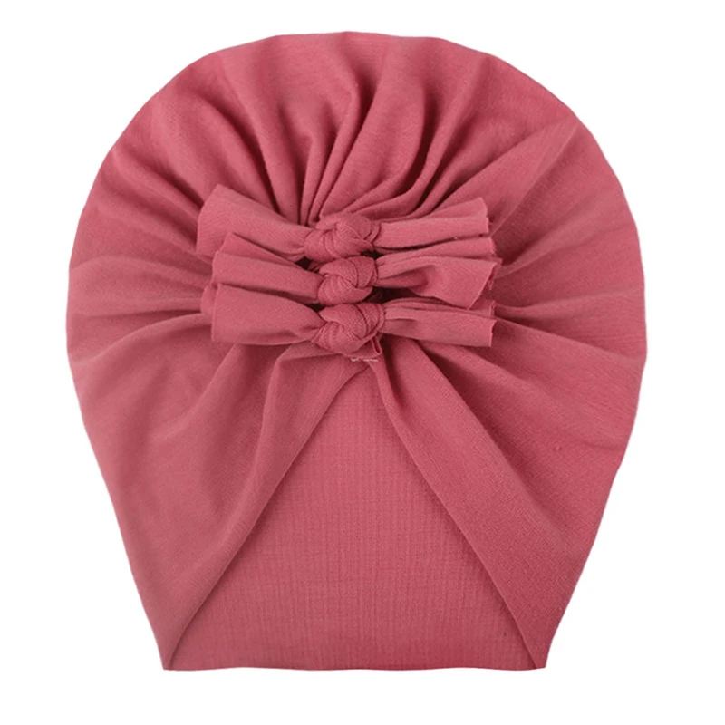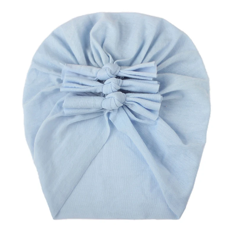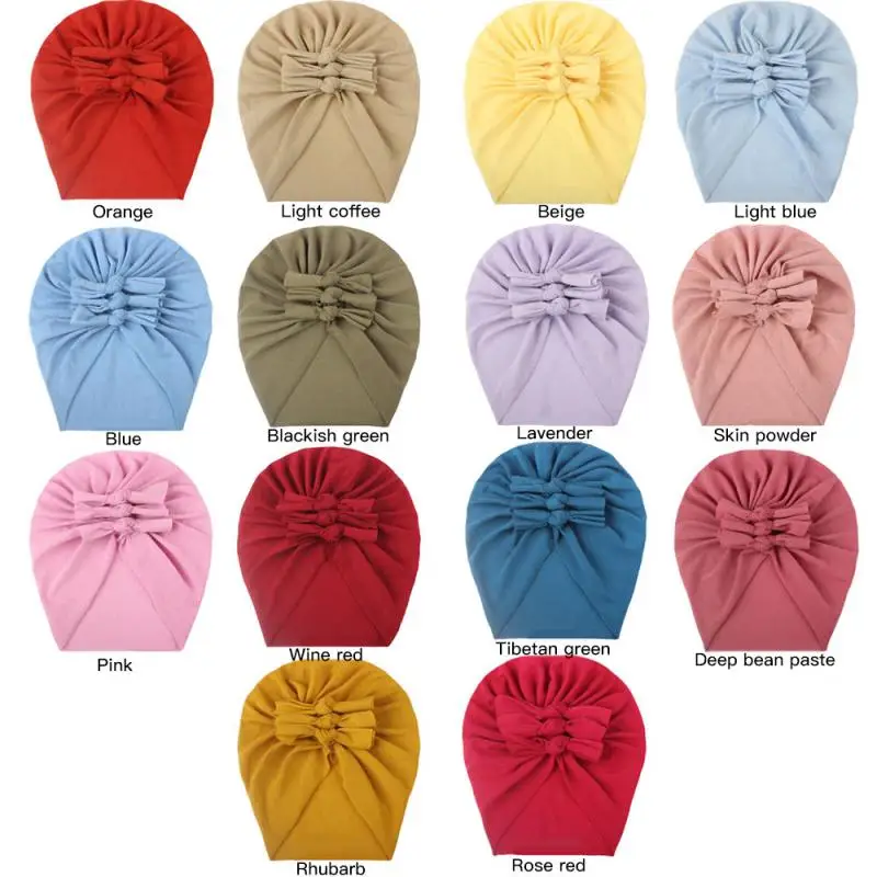 Однотонные Детские хлопковые шапки, милые чалма с бантиком, шапки, милая мягкая искусственная кожа для новорожденных мальчиков и девочек, головные уборы, аксессуары