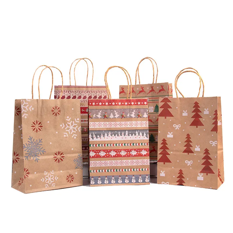 5 шт. Крафт-бумага подарочные пакеты Санта-Клаус с Рождеством конфет печенья упаковочная сумка коробки Ноэль Новый год рождественская вечеринка пользу сумки