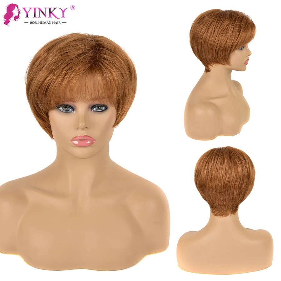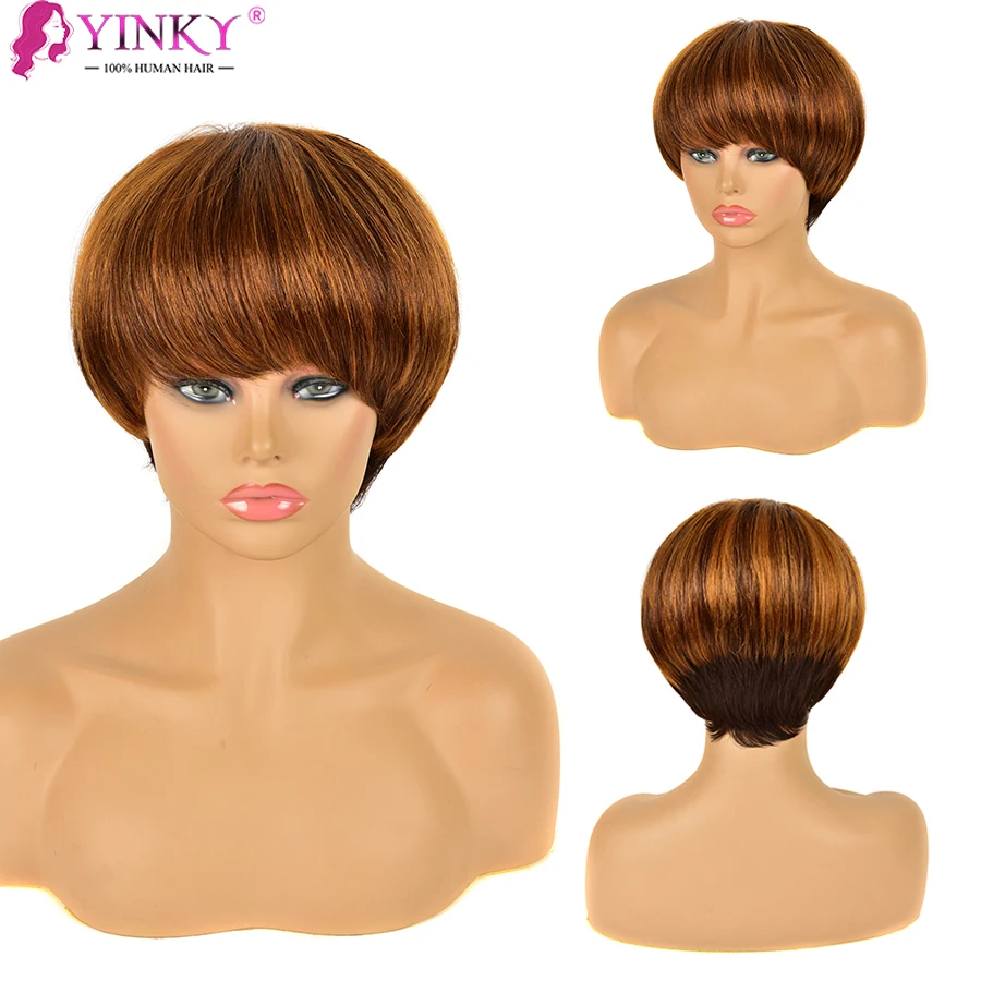 Короткий прямой парик с челкой, парики из бразильских человеческих волос с вырезами фея, парики из человеческих волос, дешевые парики из человеческих волос под стандартом 1Bфиолетовый парик