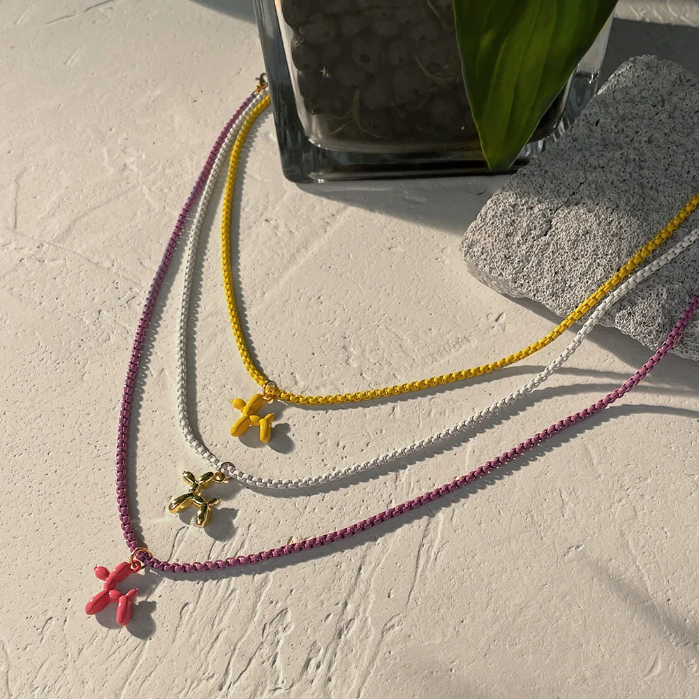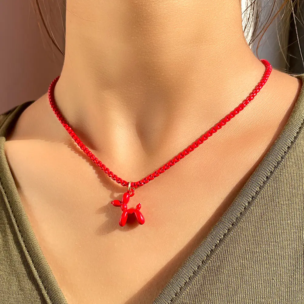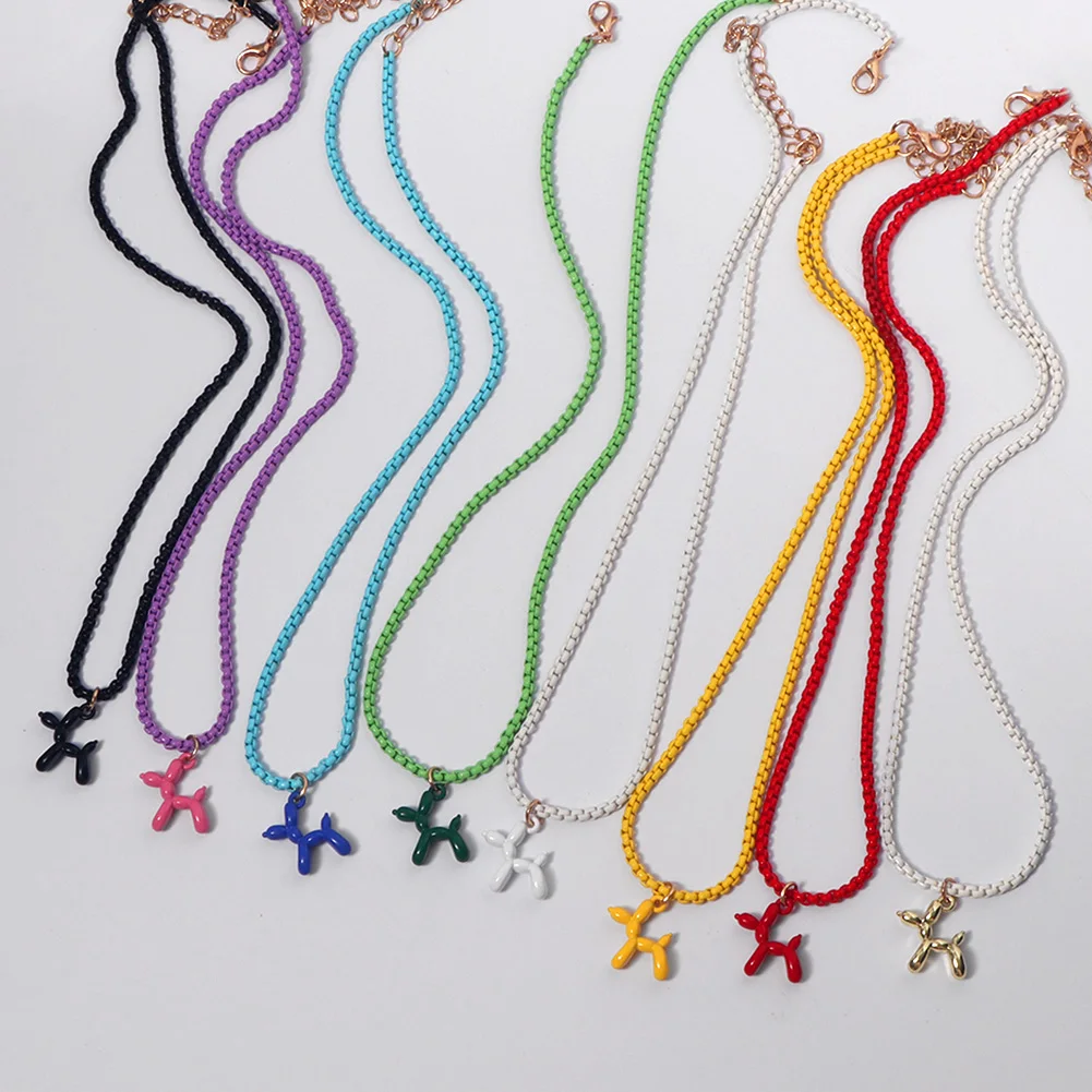 Ожерелье женское эмалированное в Корейском стиле, кулон в виде собаки, воздушного шара, жевательного медведя, модное мультяшное ожерелье карамельных цветов, ювелирные изделия