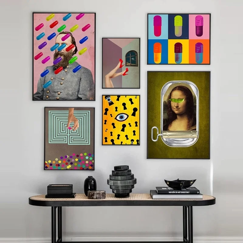 Картина на стену цветная таблетка модульный холст ретро Мона Лиза хаос плакаты картины Современный декор прикроватный фон