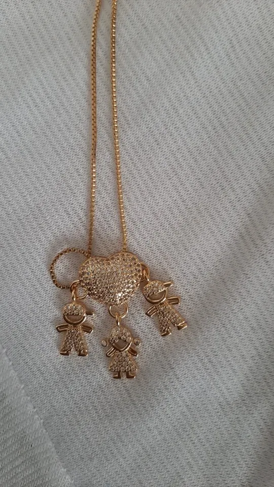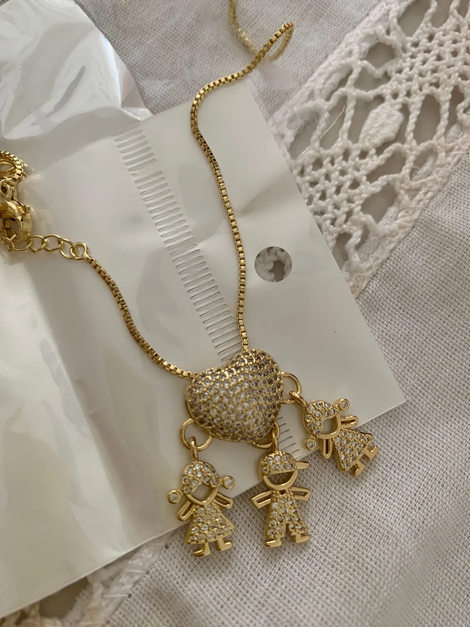 Ожерелье с кулоном для девочек и мальчиков, модное Очаровательное ожерелье с кулоном в форме сердца сына дочери, с фианитом золотого цвета, медная цепочка, подарочное ювелирное изделие
