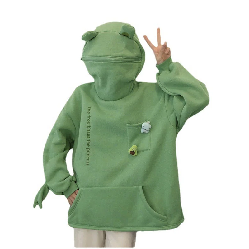 Толстовка мужская и женская оверсайз, с вышивкой в виде лягушки, теплый пуловер в стиле Харадзюку, Женская Толстовка в Корейском стиле, весна 2021