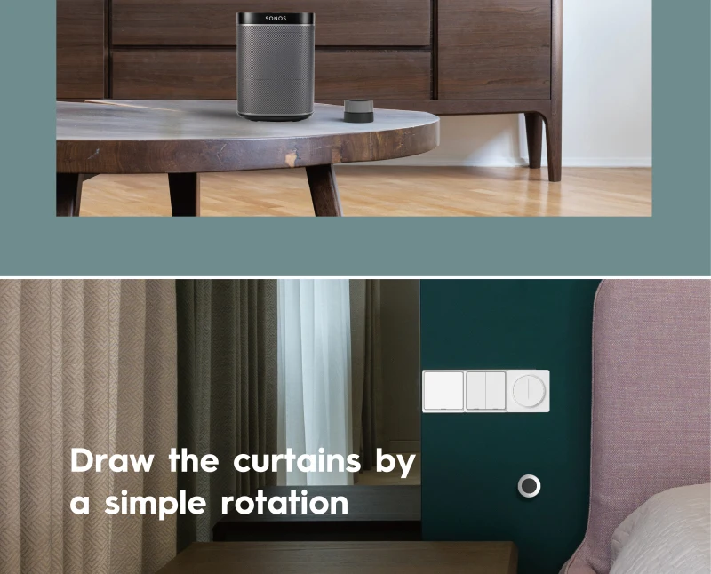 1. 【Настройка/действия кнопок. 】 Умная Ручка, подходящая к смарт-сцене, откройте умную сцену с помощью одной кнопки. Вам не нужно нажимать режим сцены на телефоне, просто нажмите умную ручку, чтобы открыть умную сцену. Например, Режим кино: Включите телевизор, выключите светильник в гостиной, закройте шторы, включите окружающий светильник телевизора и включите звук. Нажмите на умную ручку, чтобы сделать это.