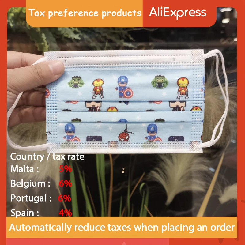 50 шт. мультяшная одноразовая маска для лица 3-слойные противопылев...