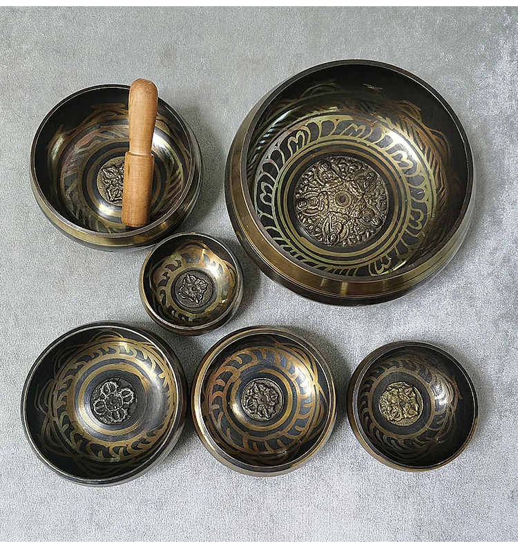Тибетская медная чаша для медитации, чёрный звук пения, буддийские товары, чаши для медитации, буддистские чаши, набор