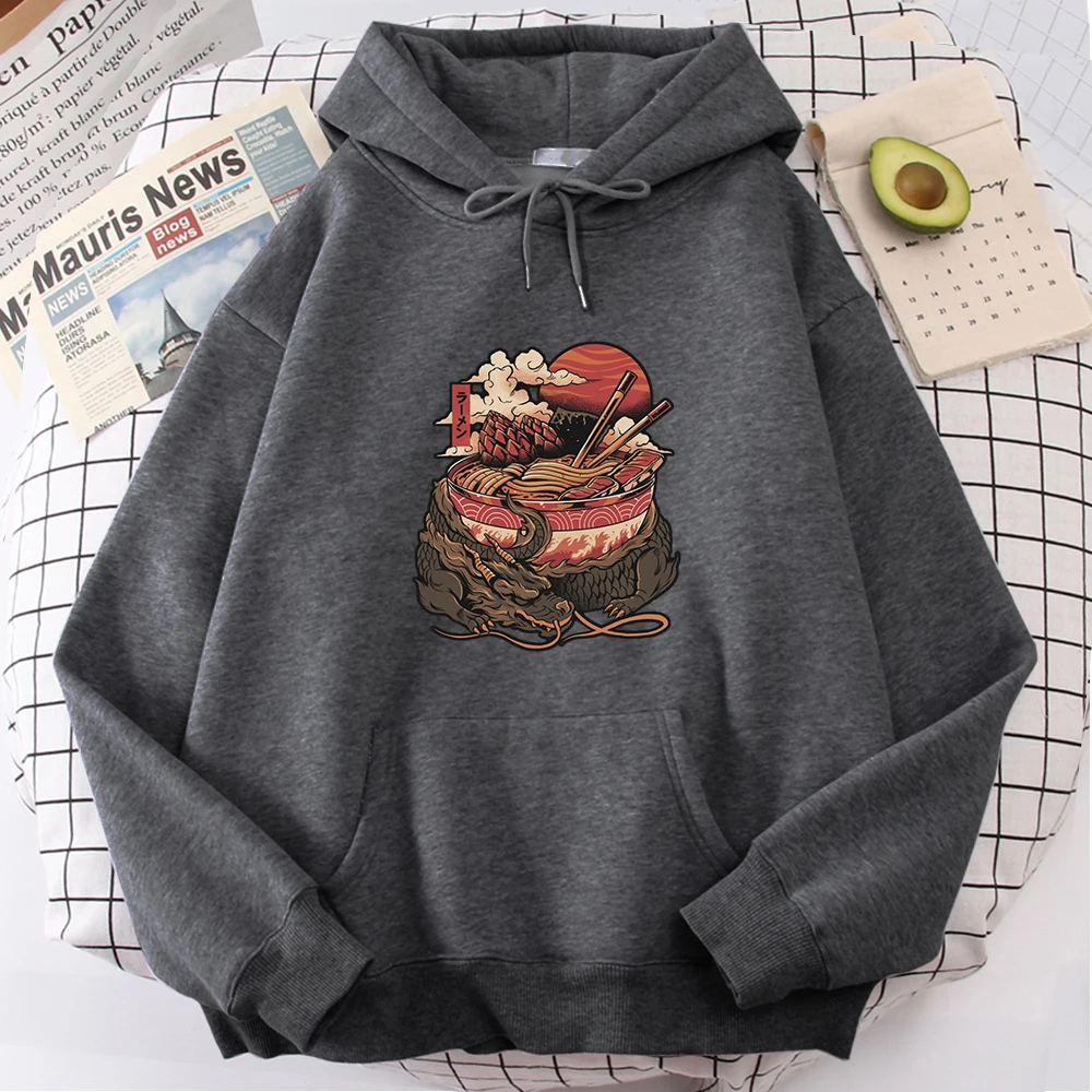 Толстовка с японским драконом и рамен, мужская повседневная Корейск...