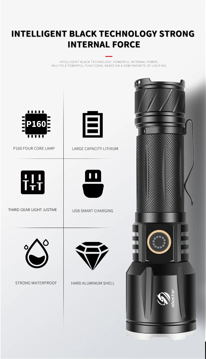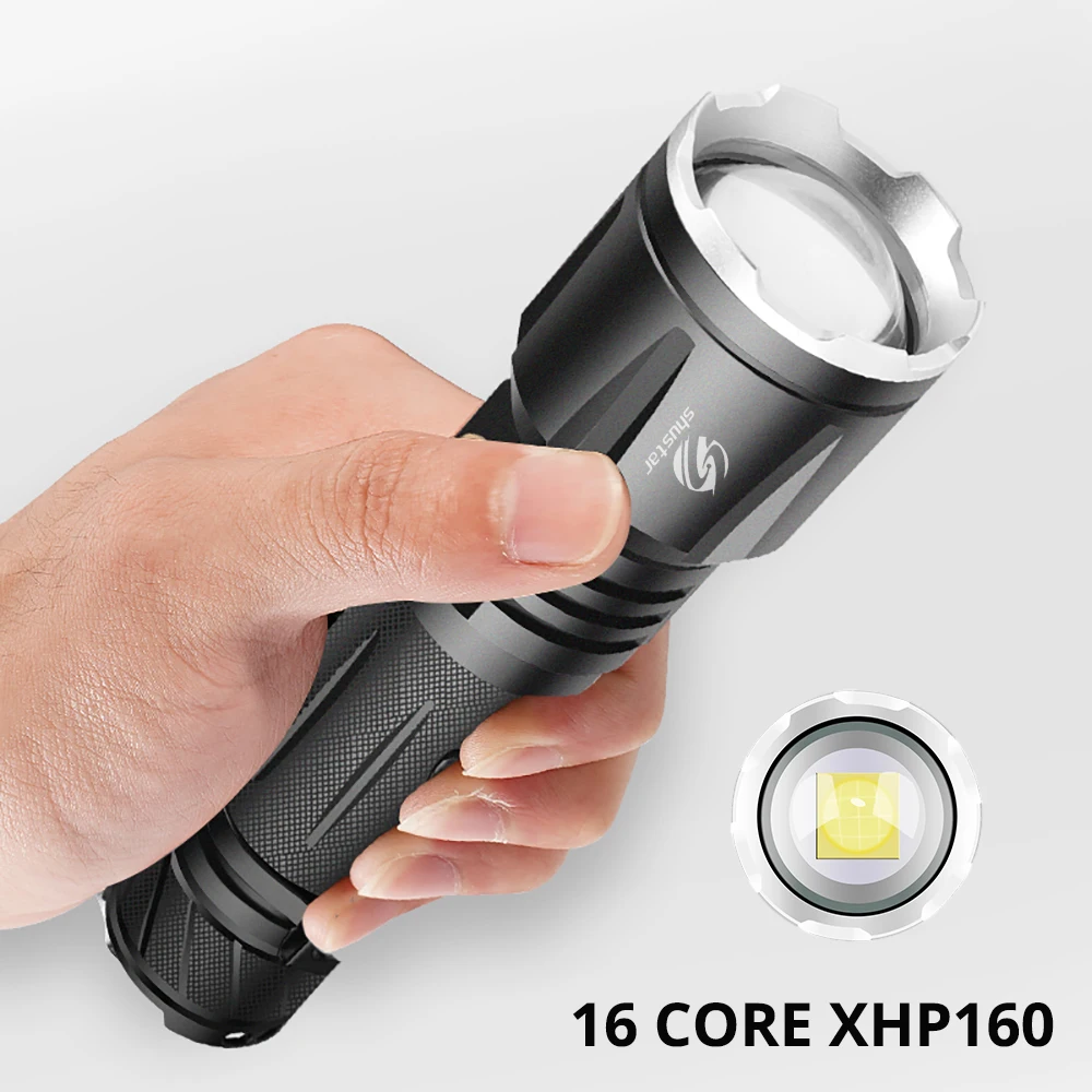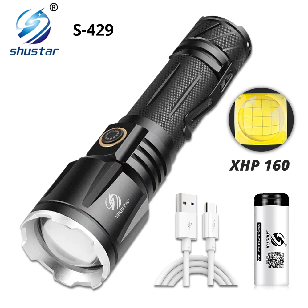 Мощный светодиодный фонарик XHP160, масштабируемый супер яркий фонарик, водонепроницаемый фонарь для приключений, подходит для охоты, кемпинга и т. д.